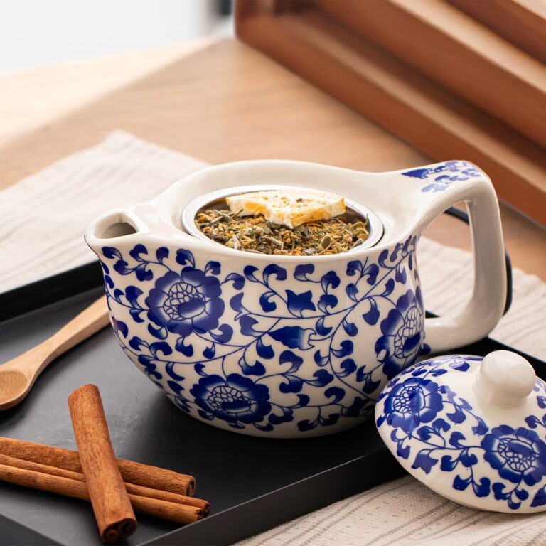 Porsima Dem-133-6 Porselen Bitki Çayı Demliği Lacivert Detaylı Desenli Tek Demlik 400 ml