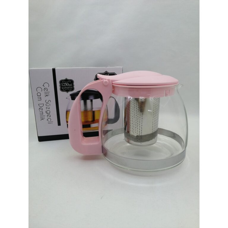 Yakut 1250 ml Çelik Süzgeçli Cam Demlik- Pembe
