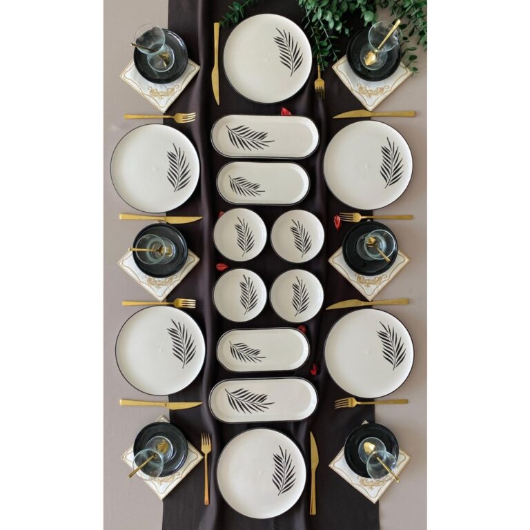 Yiğit Seramik Züccaciye Siyah Palmiye 6 Kişilik 20 Parça Kahvaltı Takımı