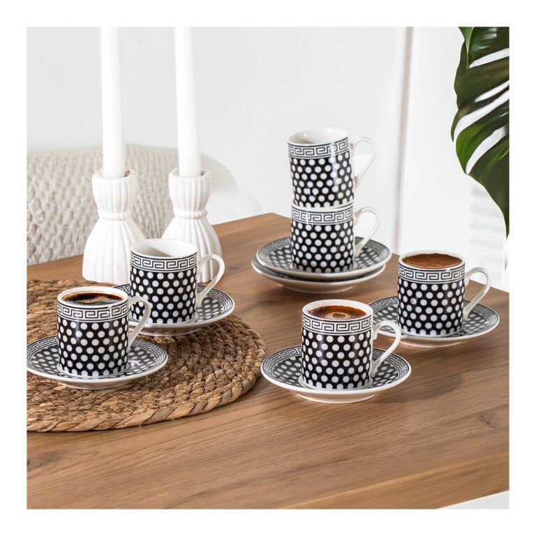 Porsima Yx-04 Aldon 6 Kişilik Porselen Kahve Fincan Takımı – Puantiyeli Kahve Fincan Seti