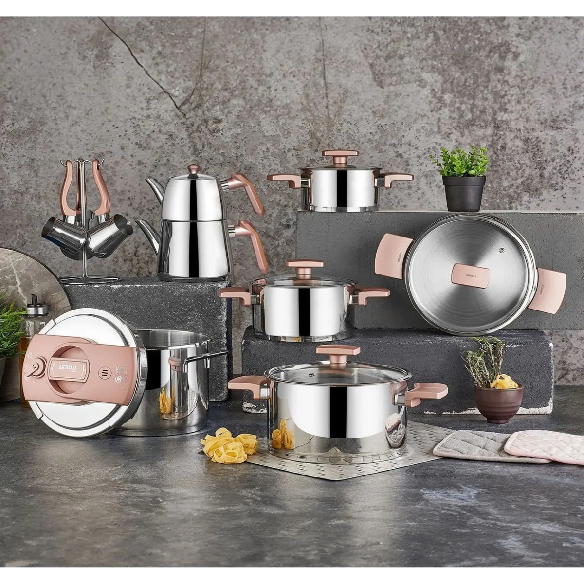 18 Parça Bal Peteği Çeyiz Seti, Pembe, Şık ve Kullanışlı Tasarım
