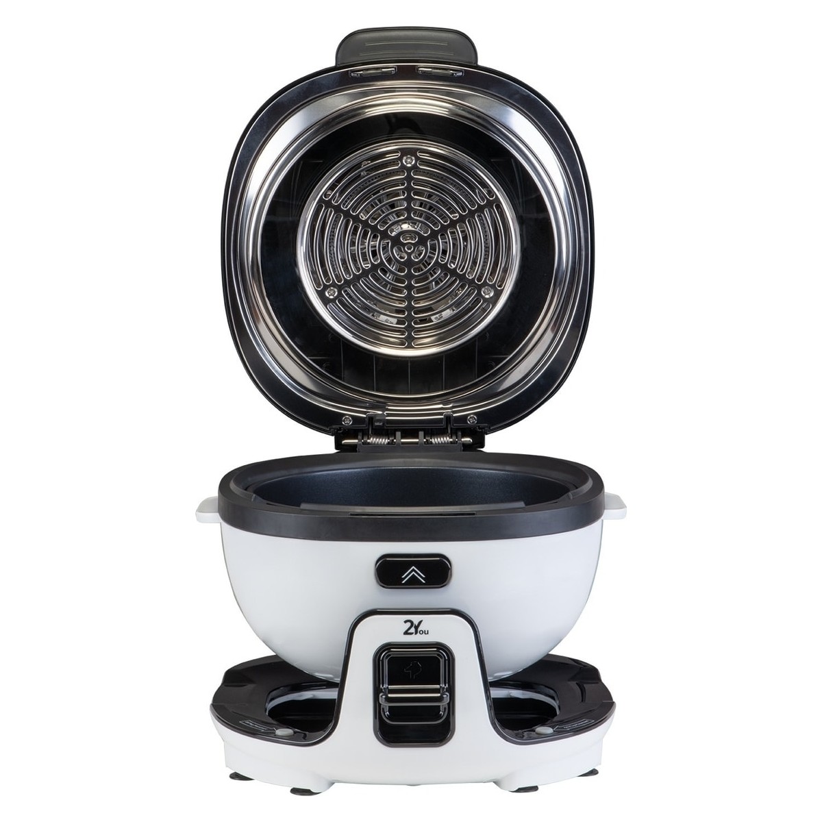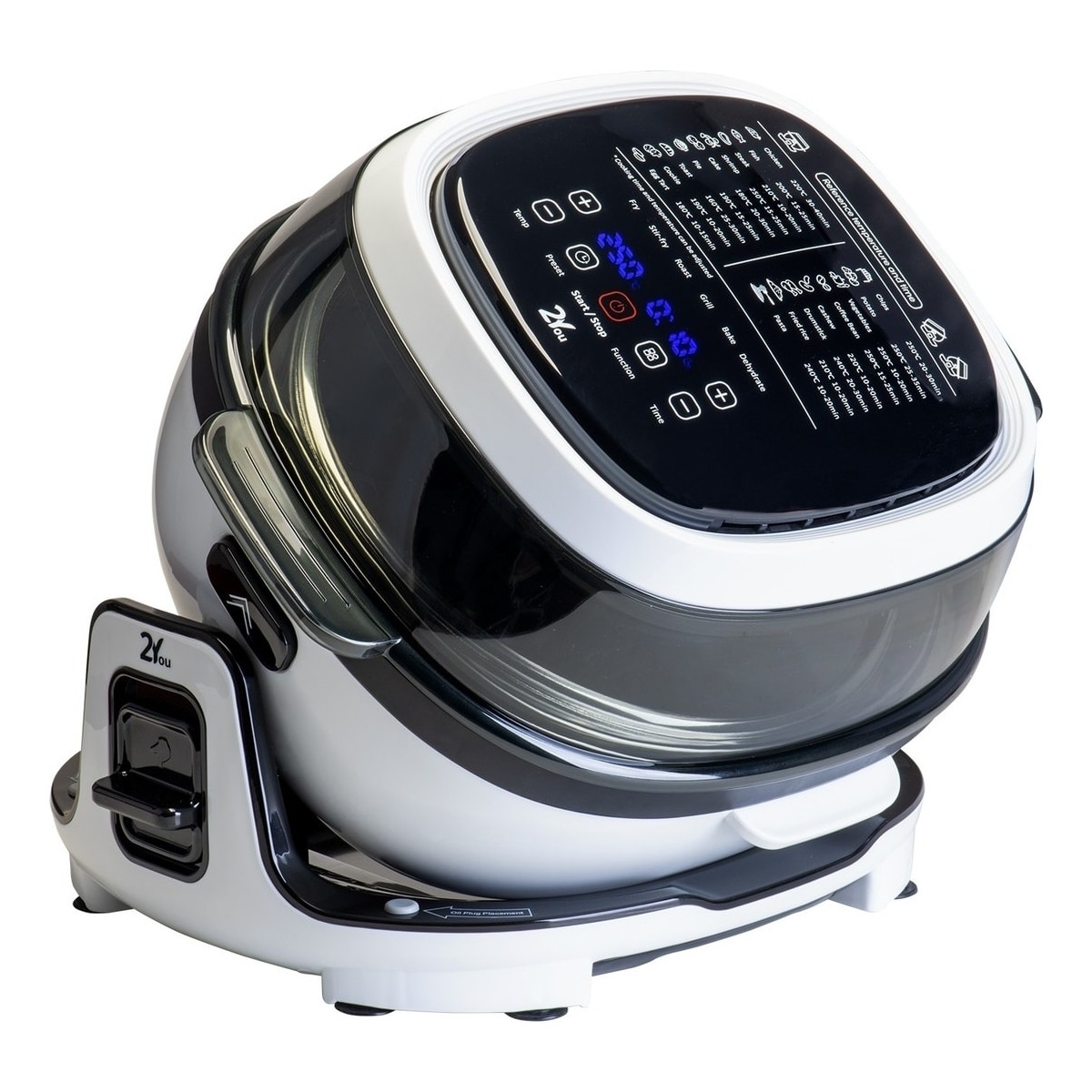 Türkiye’de İlk Artık Pişirmek İstediğiniz Ürünlerinizi Çıkartıp Sallamaya Gerek Duymayacaksınız… Ürünleriniz, 2you Sc30 ‘un dönen iç haznesi sayesinde eşit olarak pişer. 6 Farklı Pişirme Modeli Kızartma-Çevirerek , Kızartma-Fırınlama-Izgara-Pişirme-Kurutma modları ürünlerinizi isteğinize uygun şekilde sonuçlandırır. 40/250 Derece Geniş Isı Ayarı Çıkarılabilir Hazne Kolay Temizleme Gerilim: 220 – 240V Güç: 1200-1400W Frekans: 50/60Hz Sıcaklık Aralığı: 1-60’ dk. Kapasite: 6L
