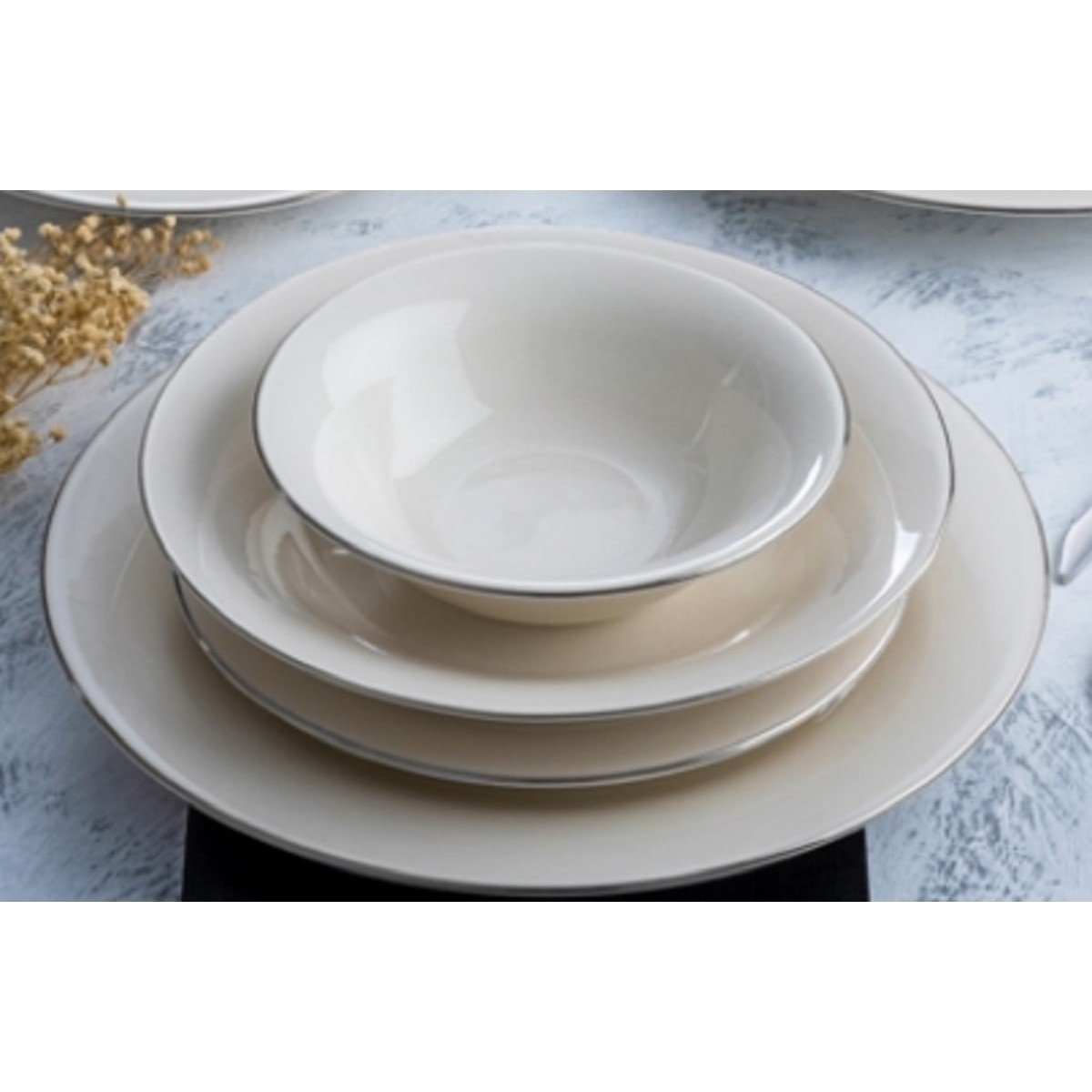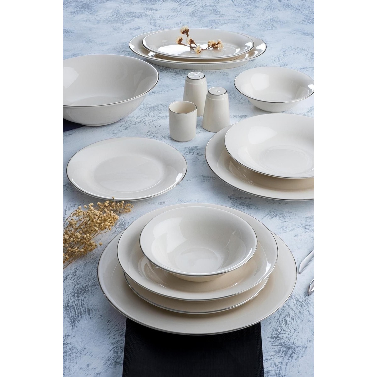 Bria 12 Kişilik 60 Parça Yemek Takımı – Silver — kalabalık sofralarınız için şık ve modern bir çözüm. Zarif porselen yapısı ve sade tasarımıyla her davete uyum sağlar, sofralarınıza estetik bir dokunuş katar.