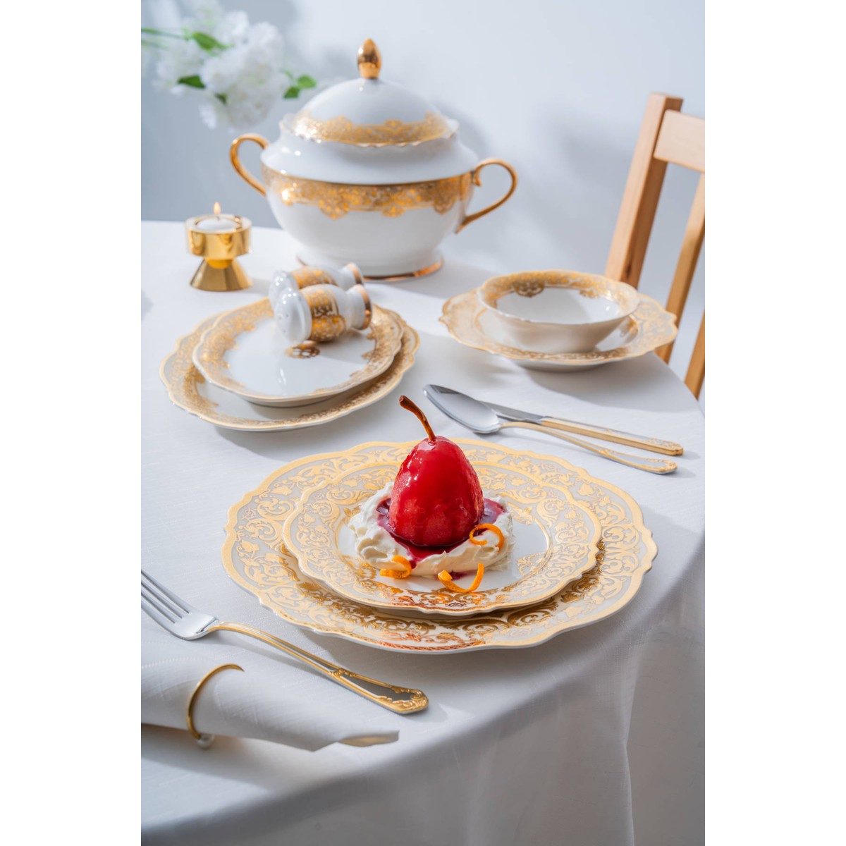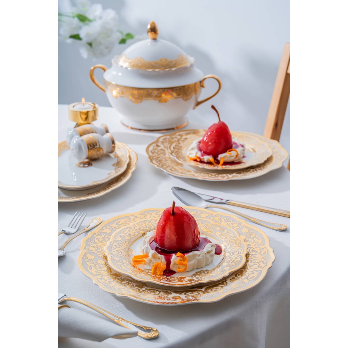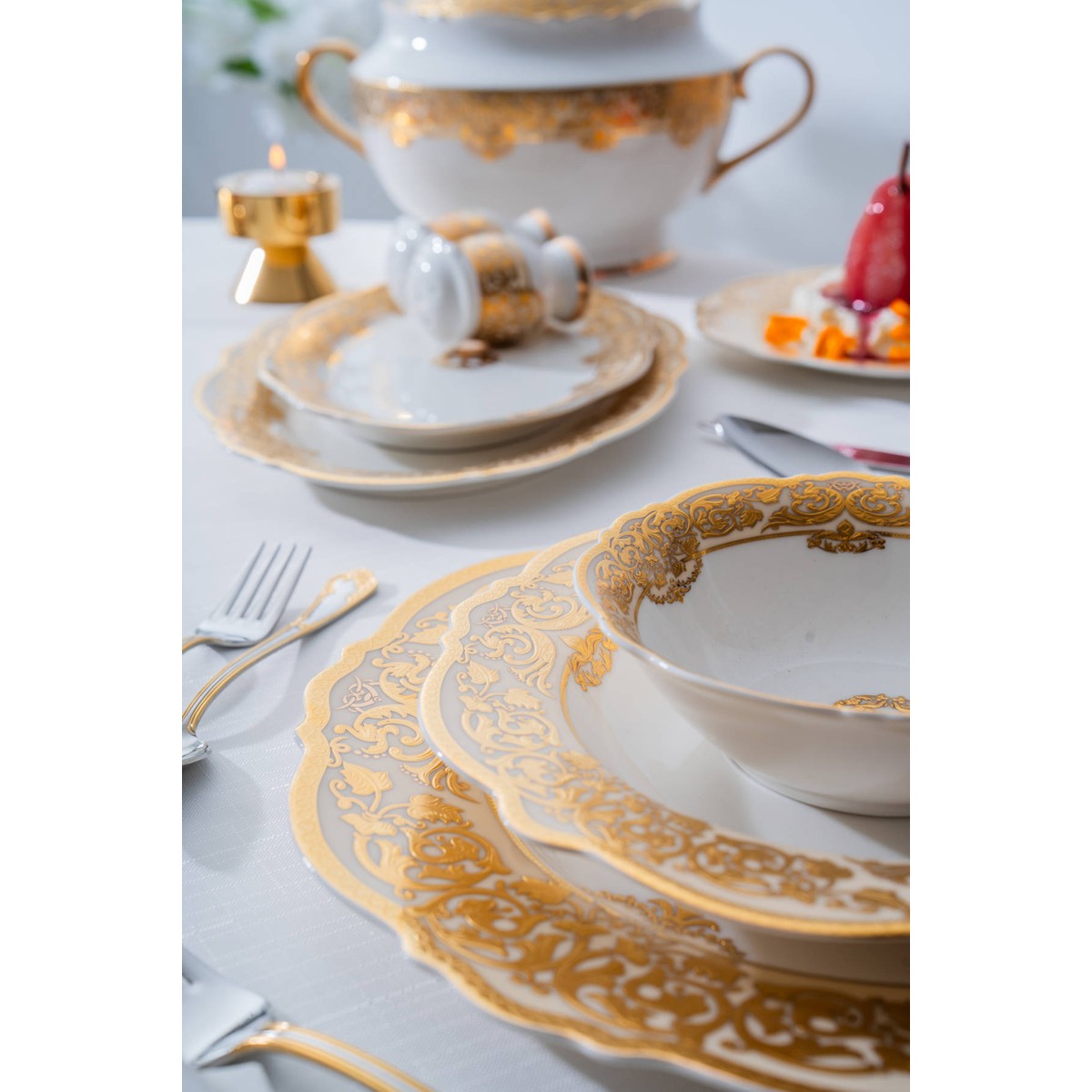 Damasse 12 Kişilik 60 Parça Porselen Yemek Takımı
