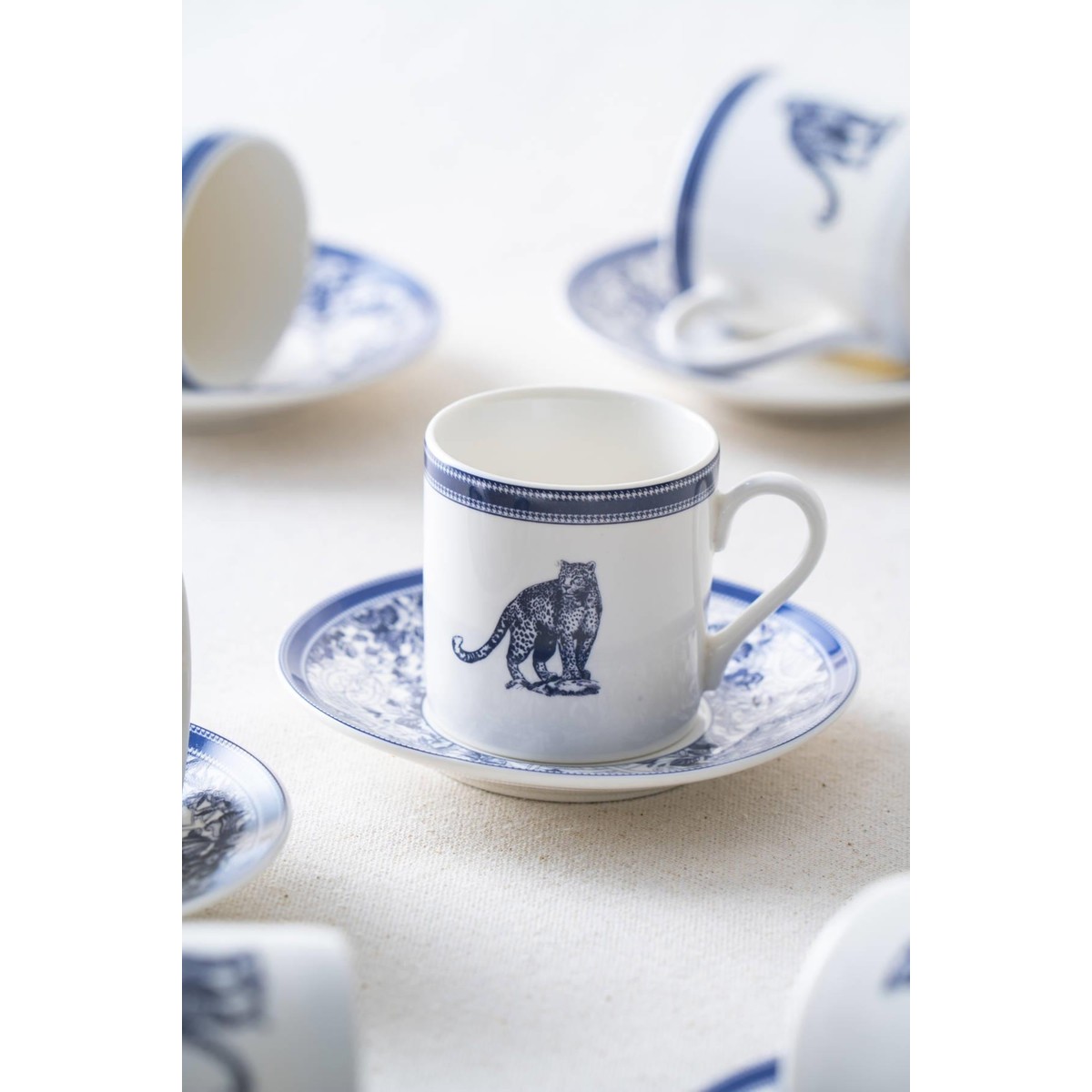 Klasik beyaz porselen üzerine işlenen leopar desenleriyle öne çıkan Pars Kahve Fincanı Takımı, kahve sunumlarınıza karakter ve özgünlük katar.