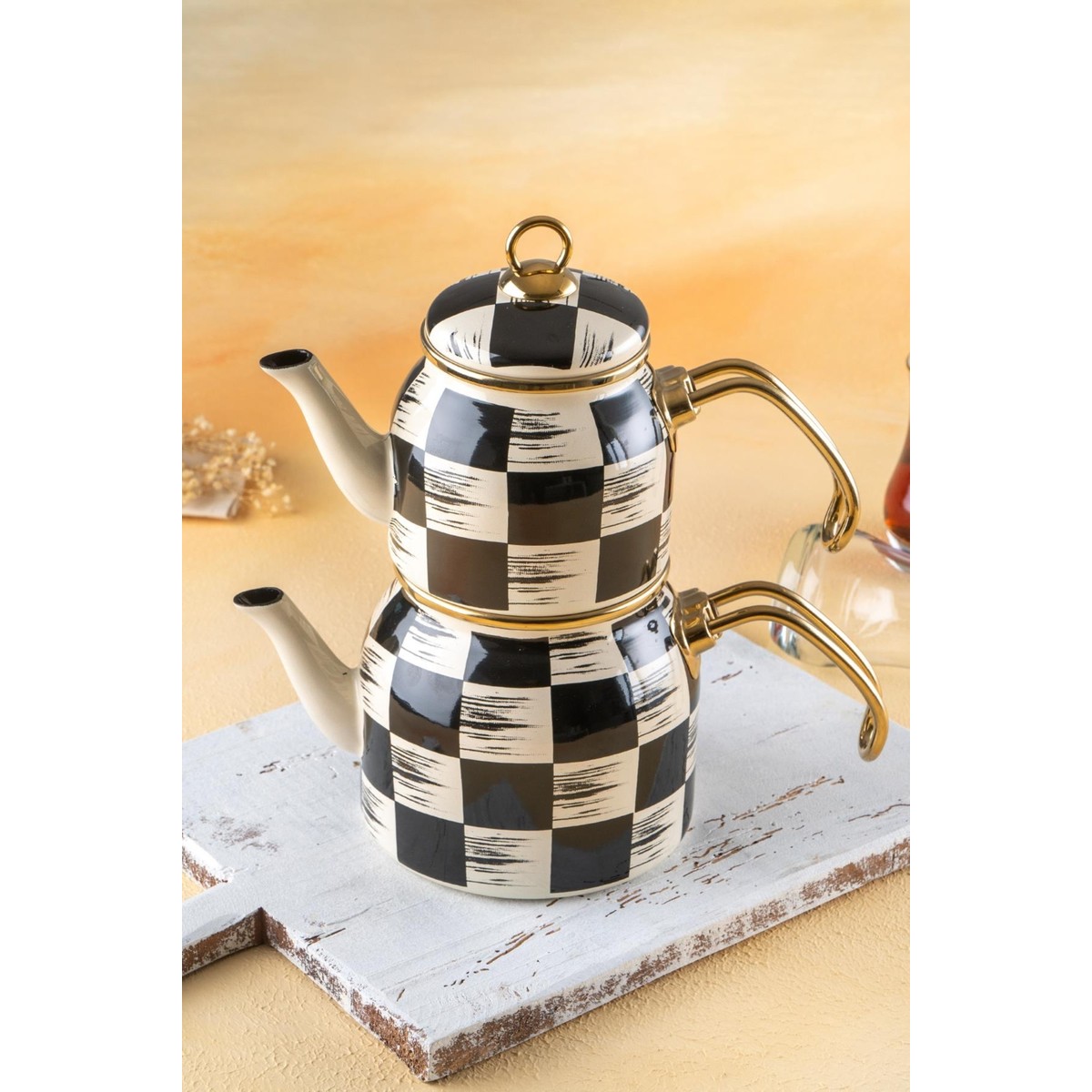 Qualita King Mini Beyaz Emaye Çaydanlık Takımı