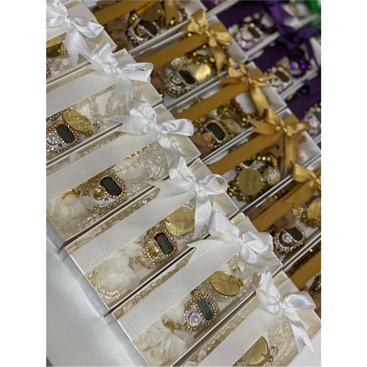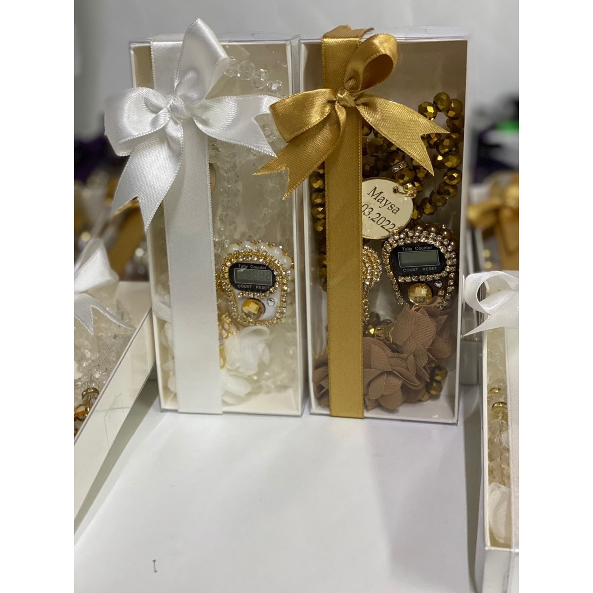 AGH Değerli Hediyeler 10 Adet Isme Özel Dağıtmalık Hediye Kristal Tesbih ve Taşlı Zikirmatik Hediyelik Seti