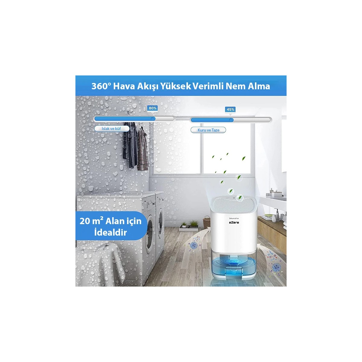 EZERE H2102 Nem Alma Cihazı/Hava Temizleme Cihazı ile evinizde bakteri, küf ve alerjenleri önleyin.