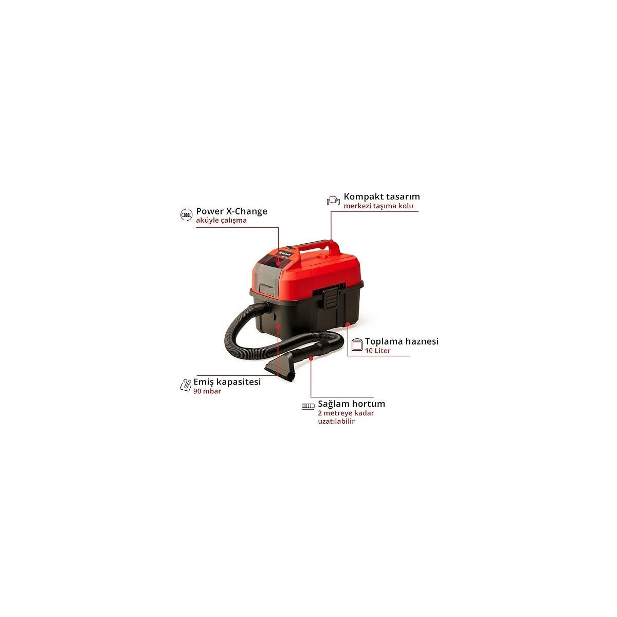 Akülü Islak/kuru Süpürge Te-Vc 18/10 Li-Solo Power X-Change (10 L Tank, 2 M Hortum, Dar Aralık/fırça Başlığı, Döşeme/genel Başlık Dahil, Akü Dahil Değildir) – 2347160