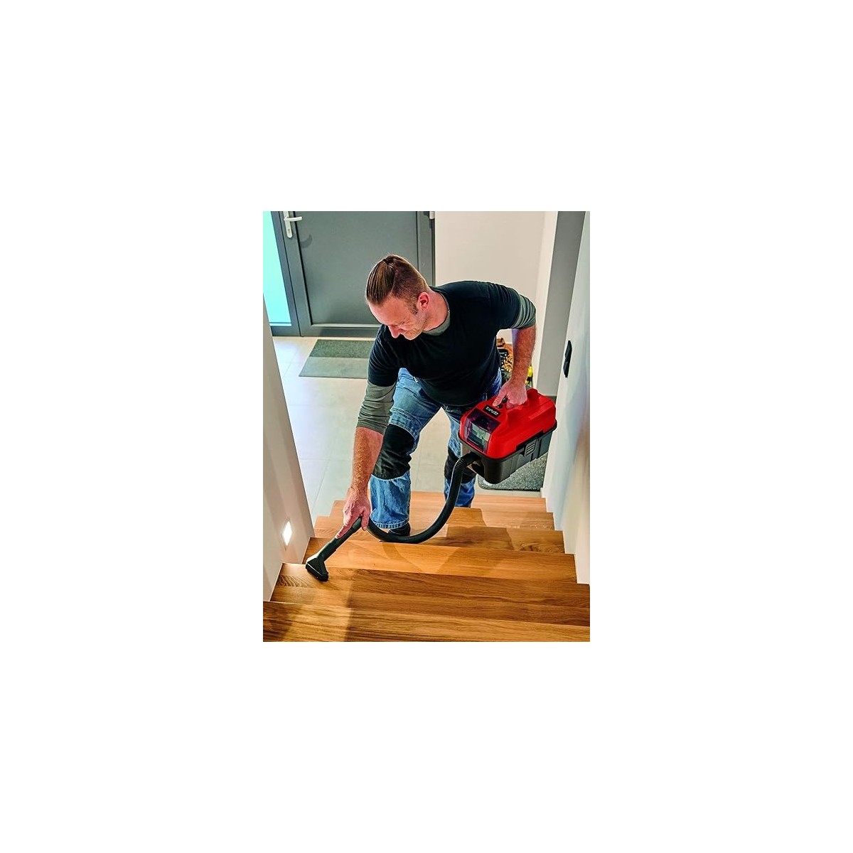 Akülü Islak/Kuru Süpürge TE-VC 18/10 Li-Solo, kablosuz olarak toz, kir ve sıvıları temizler – ister fayans, halı veya diğer zeminler olsun, süpürge çok yönlü kullanılabilir. Çok fonksiyonlu süpürge, yüksek performanslı Power X-Change ailesine aittir. Tüm sistem aküleri cihazlarla kombine edilebilir. Akü ve şarj cihazı ayrı satılmaktadır. 10 litrelik toplama haznesi, uzun süreli kullanım için yeterli alan sağlar. Hızlı açma kapama mandalları sayesinde hazne kısa sürede boşaltılabilir. Ergonomik tasarım ve taşıma kolu, süpürgenin kullanıcı dostu olmasını ve kolay taşınmasını sağlar. Üfleme fonksiyonu, ulaşılması zor alanların temizlenmesine yardımcı olur. Sessiz motor, konforlu ve gürültüsüz çalışma imkanı sunar. Akıllı konumlandırılmış açma/kapama düğmesi, tek elle rahat kullanım sağlar. Aksesuarlar – 2 m uzunluğunda uzatılabilir hortum, 2’si 1 arada dar alan/fırça başlığı, 2’si 1 arada döşeme/universal başlık, sünger filtre ve toz torbası dahildir.