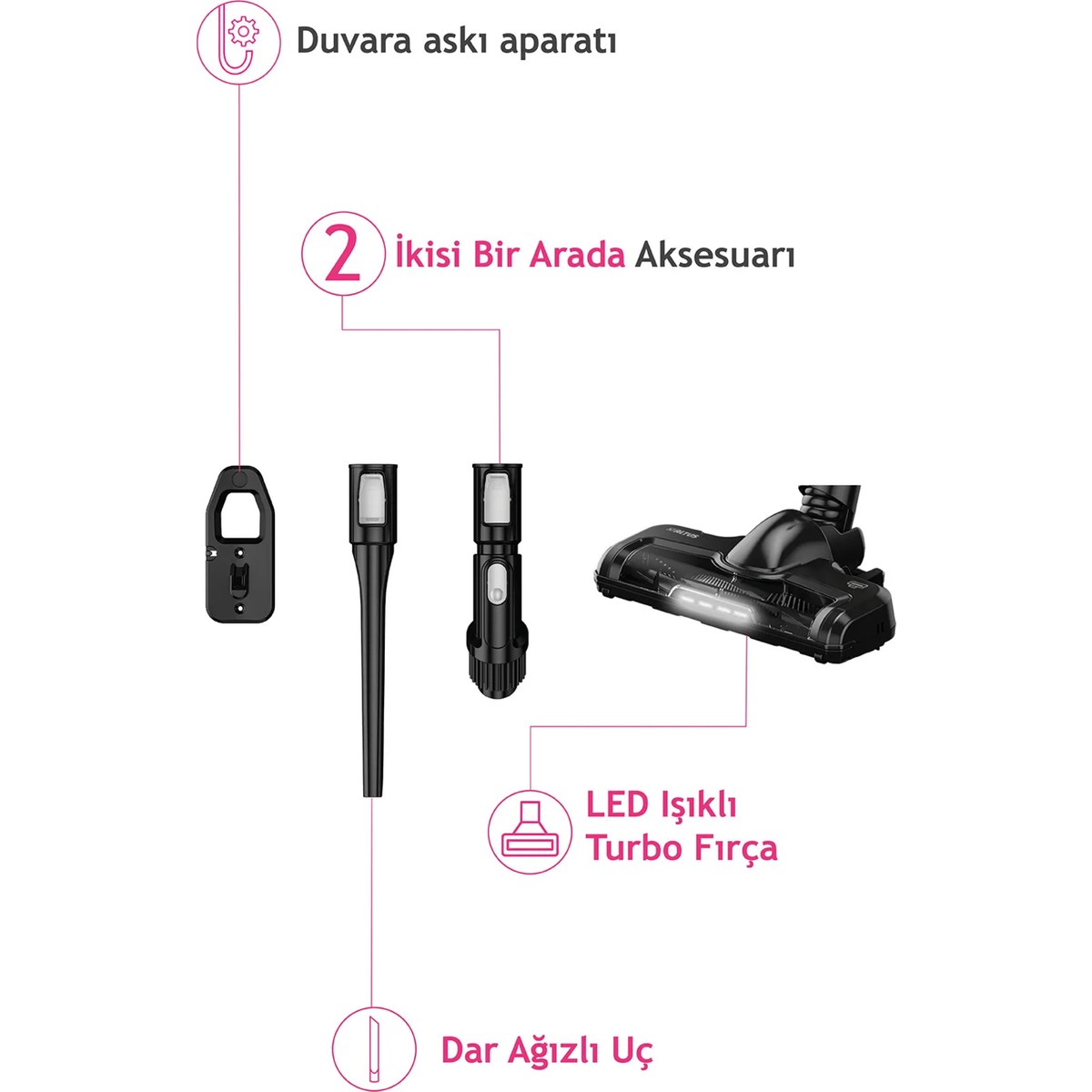 ALTUS AL 6824 DS İkisi Bir Arada Şarjlı Dik Süpürge ; Motor Gücü (W): 150 DC ; Emiş Gücü (W): 20 ; 18V, 2000mAH Li-ion Batarya ; Ses Seviyesi: 80 dBA ; LCD Gösterge Paneli ; Kablosuz kullanım süresi: 42 dk ; Şarj Olma Süresi: 4-5 Saat ; Duvara monte edilebilen şarj istasyonu ; 0.7 L Toz Toplama Haznesi ; Maksimum ve minimum güç ayarları; Çıkarılabilir uçlarıyla el süpürgesi olarak kullanım imkanı.; İnatçı tozlar ve hayvan tüyleri için Elektrikli Turbo Fırça; Mobilyaların arkası, ulaşılması zor alanlar ve dar yerlerin süpürülmesi için Dar Ağızlı Uç; Perde, cilalanmış mobilya ve hassas kırılabilir cisimlerin süpürülmesi için toz fırçası;
