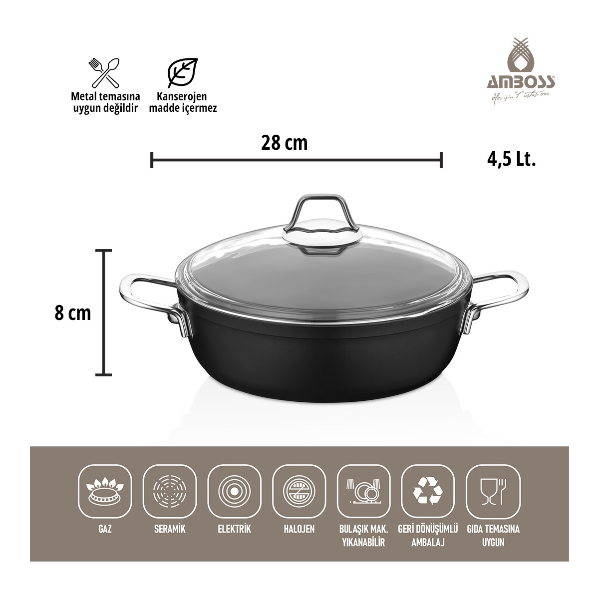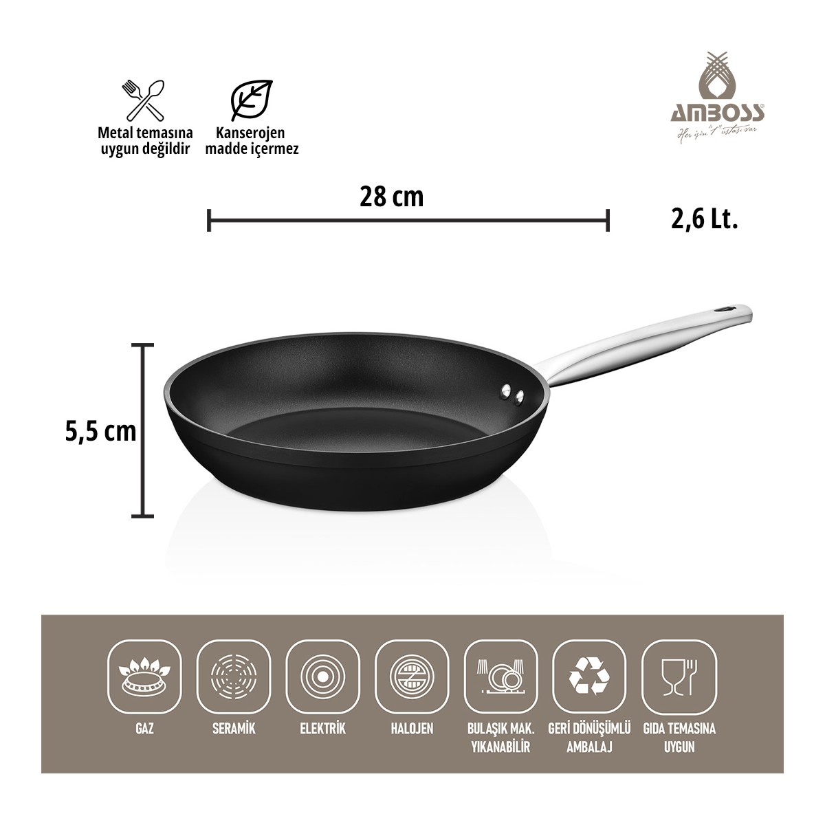 Amboss Dark 3 Parça Yanmaz Yapışmaz Titanyum Kaplama 28 cm Tencere Tava Seti ( Siyah )