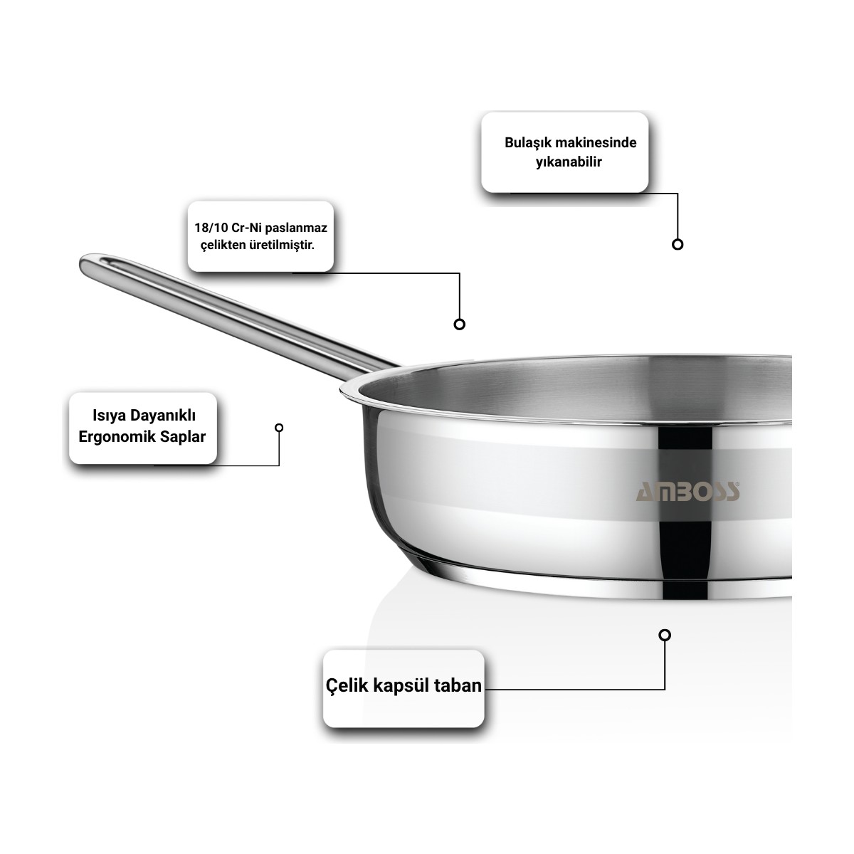 Amboss Saphire Paslanmaz Çelik Kapaksız Tava 28×8 cm