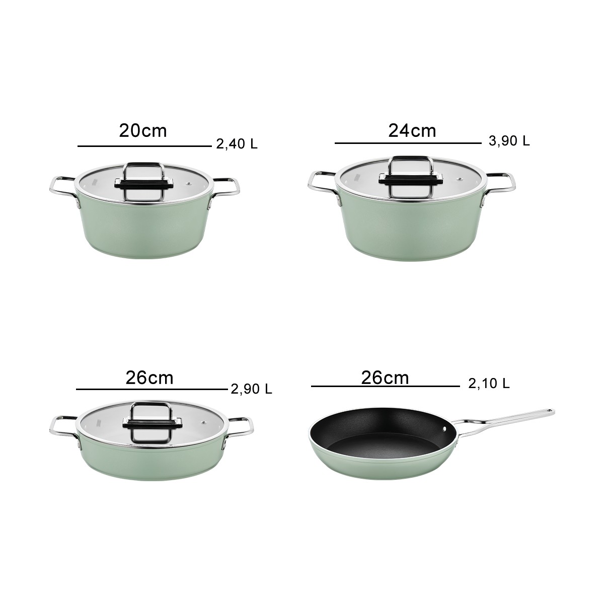 - Derin Tencereler: 20 cm (2,40 lt), 24 cm (3,90 lt)