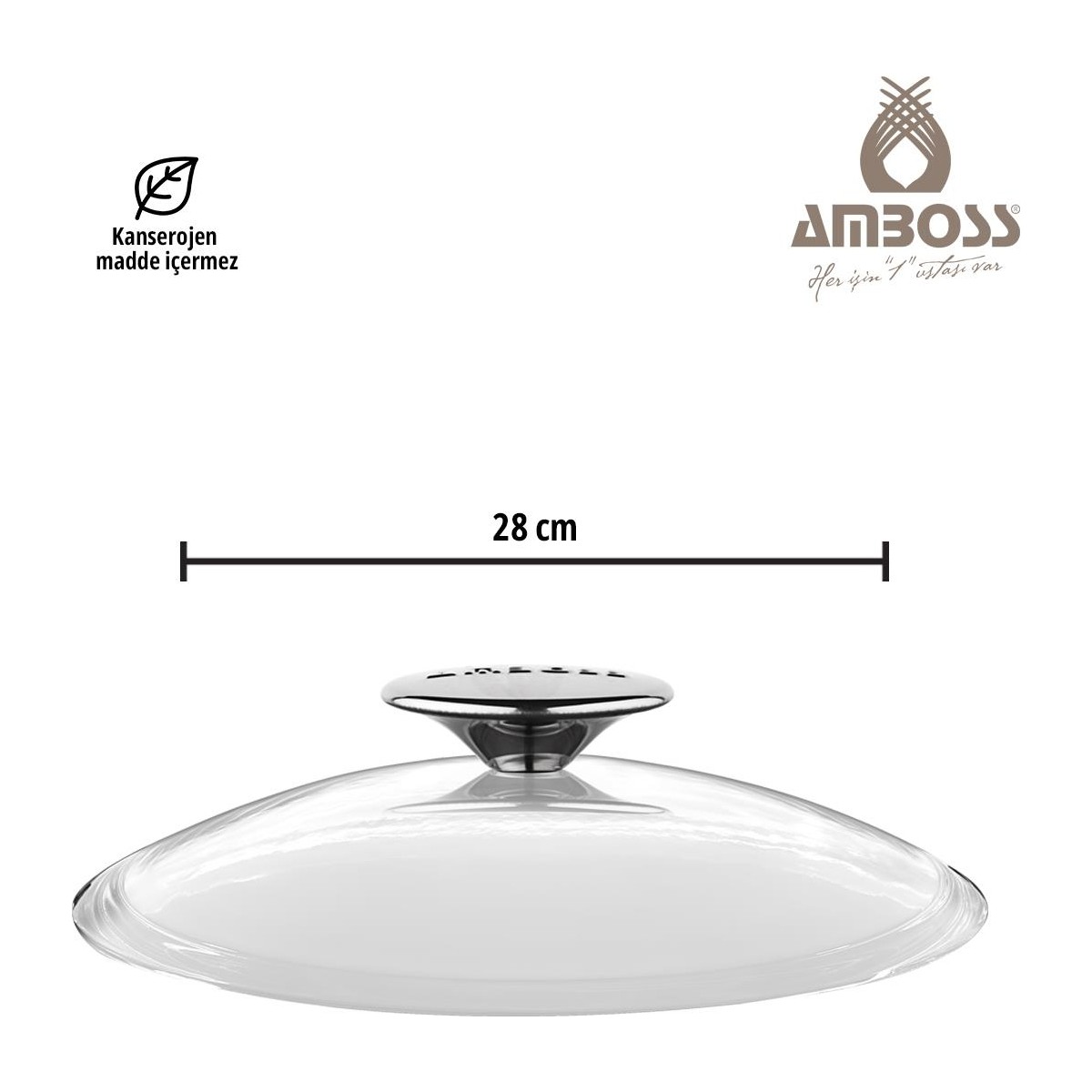 Amboss Dark Tava 28 cm Yanmaz Yapışmaz Titanyum Kaplama  – Cam Kapaklı