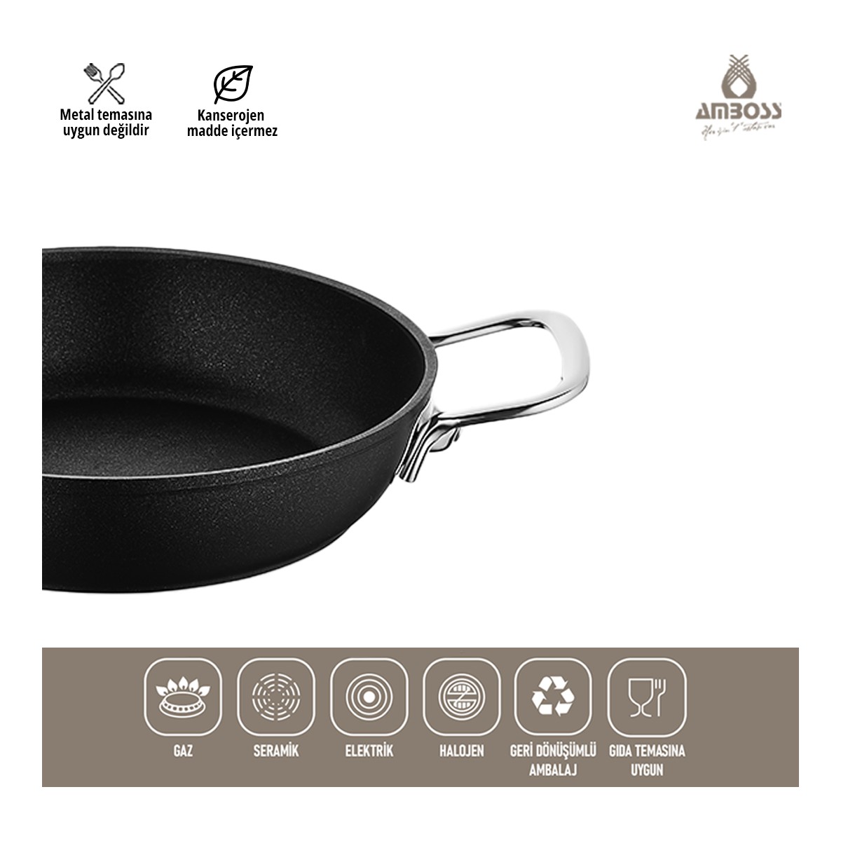 Aradığınız pratiklik ve üstün performans bir arada! Amboss Dark Yanmaz Yapışmaz Titanyum Kaplama Sahan 20 cm ile mutfağınızda ustalığınızı konuşturun.