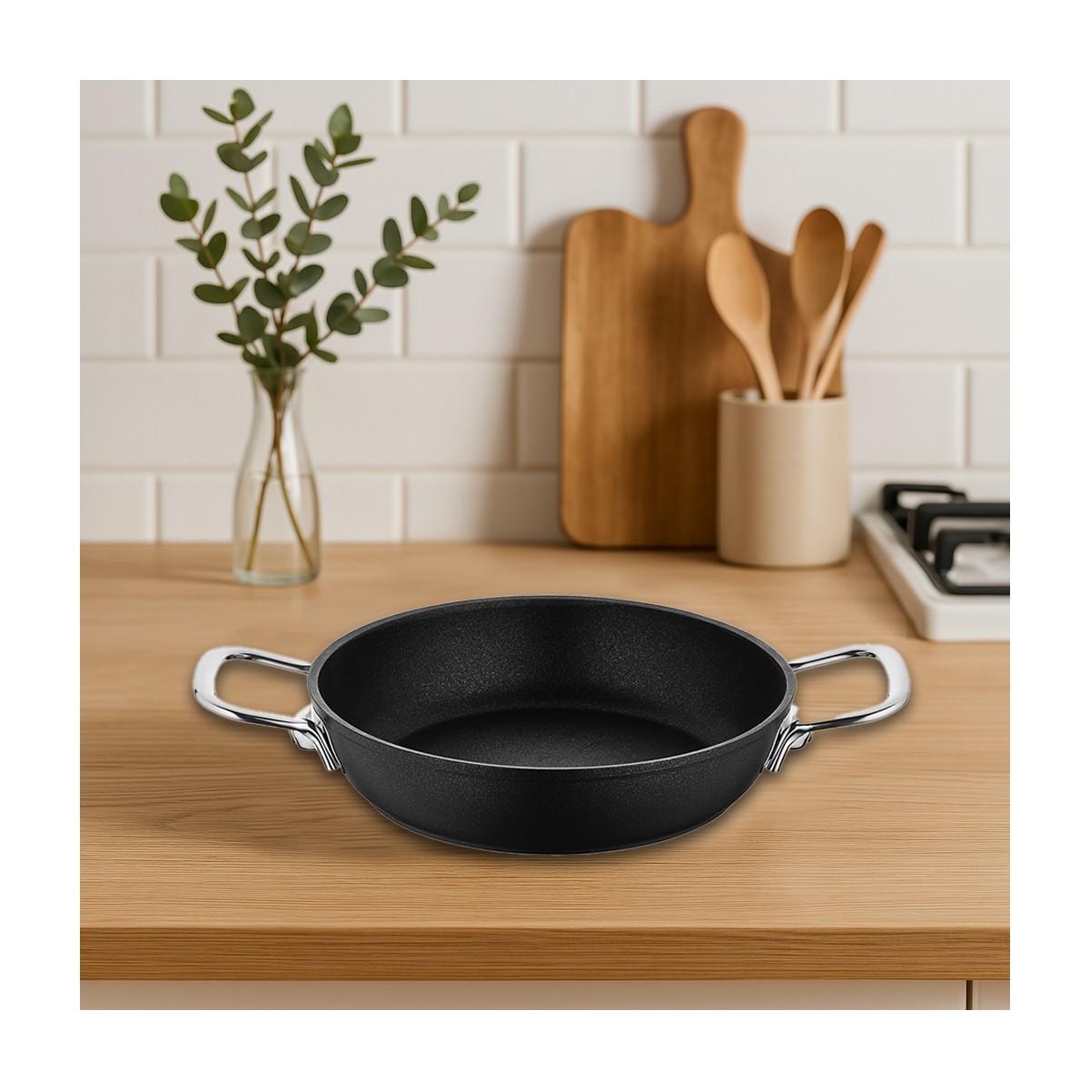 Bu 22 cm sahan, ailenizle veya arkadaşlarınızla paylaşabileceğiniz daha büyük porsiyonlar hazırlamak için tasarlandı. İster kalabalık bir kahvaltı sofrası, ister hızlı bir öğle yemeği olsun, bu sahanla doyurucu omletler, menemenler ve kızartmalar hazırlamak artık çok kolay. Geniş yüzeyi sayesinde yemeklerinizi rahatça karıştırabilir ve pişirebilirsiniz.