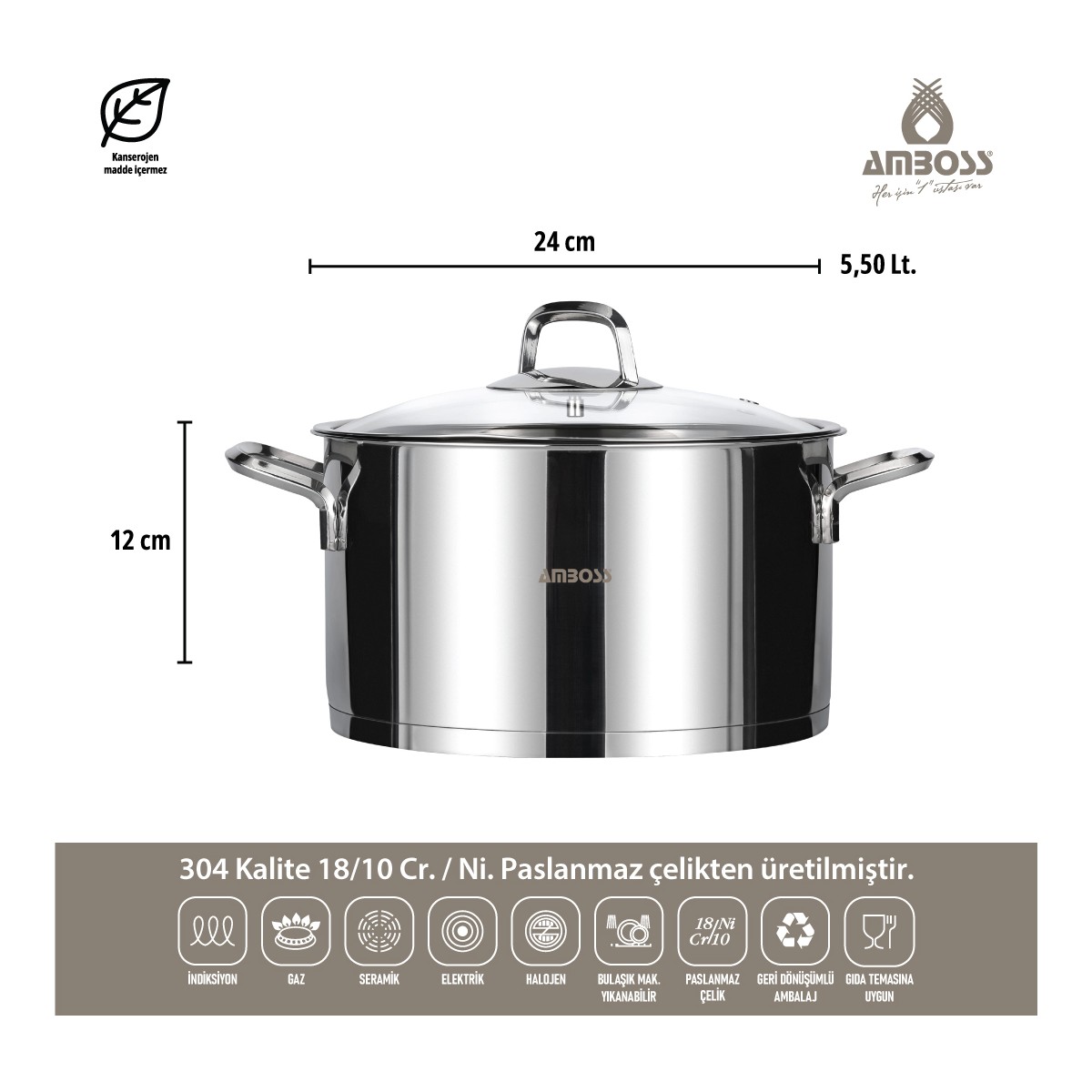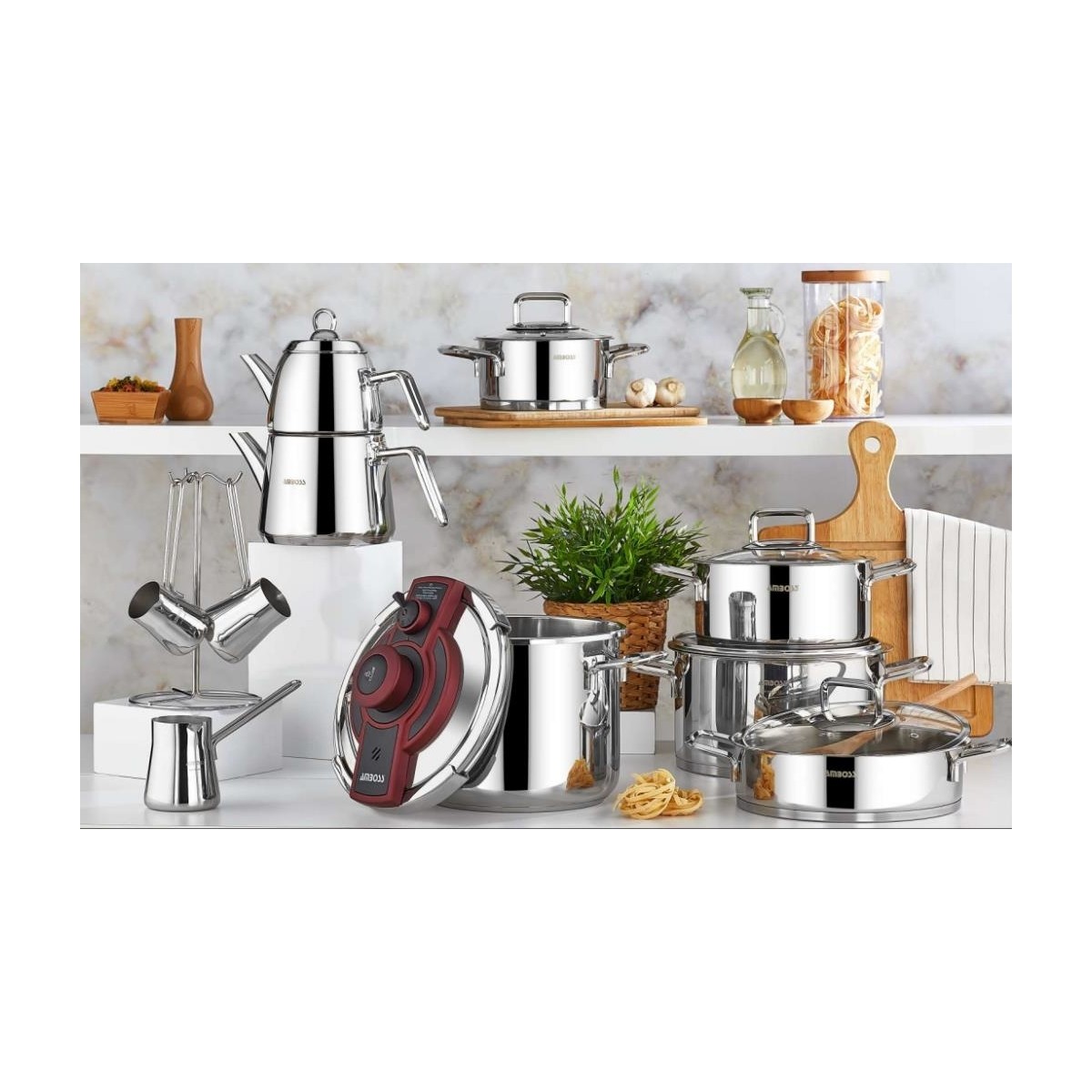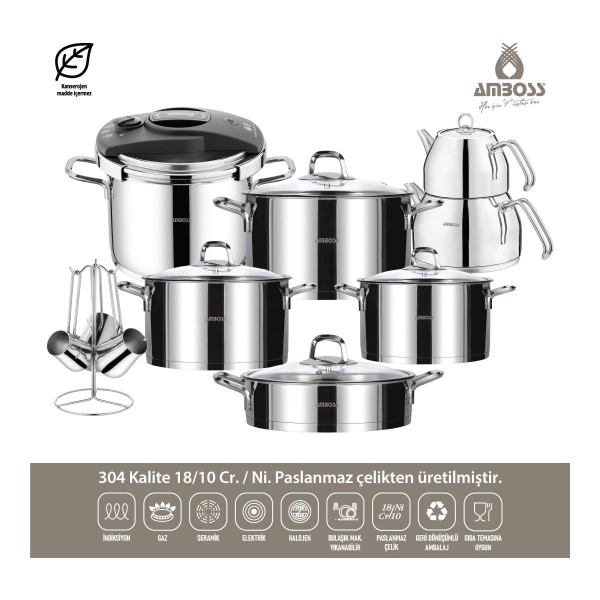 Amboss Dimond Çelik 18 Parça Çeyiz Seti | Paslanmaz Çelik | 2 Yıl Garantili | Çelik Kapsül Tabanlı | Aşınma ve Matlaşma Yapmaz | Tüm Ocak Tiplerine Uygun