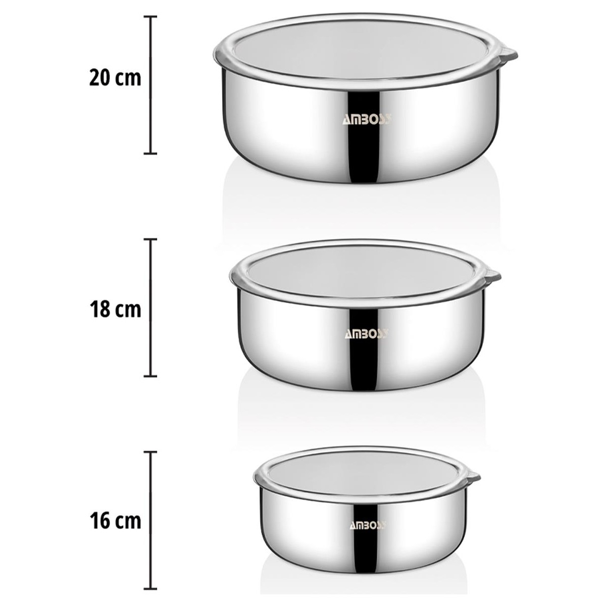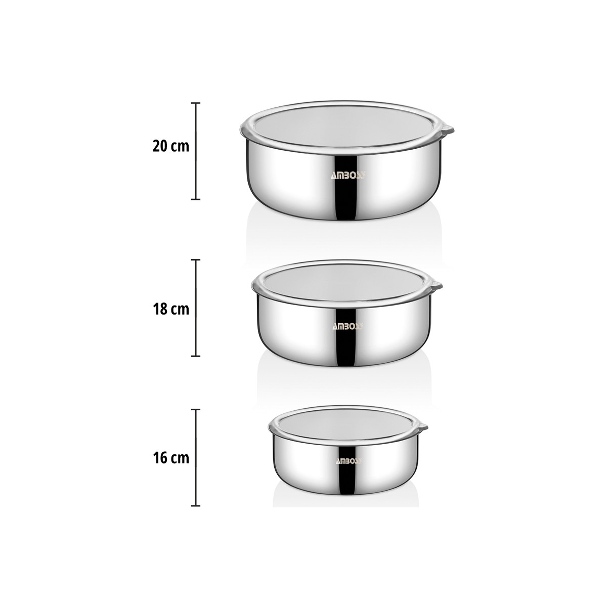 • İdeal Boyutlar: 16 cm, 18 cm ve 20 cm olmak üzere 3 farklı boyutta kap ile tüm yiyecekleriniz için çözüm sunar.