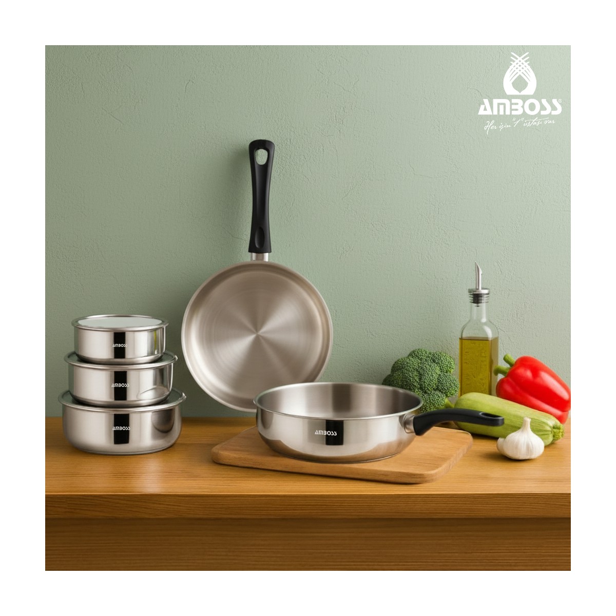 Mutfakta hem düzen hem de kalite arayanların vazgeçilmezi: Amboss Elite 8 Parça Paslanmaz Çelik Saklama Kabı & Tava Seti ile tanışın. Bu çok yönlü set, yiyeceklerinizi taptaze saklamanızı ve her türlü yemeği profesyonelce pişirmenizi sağlayacak.