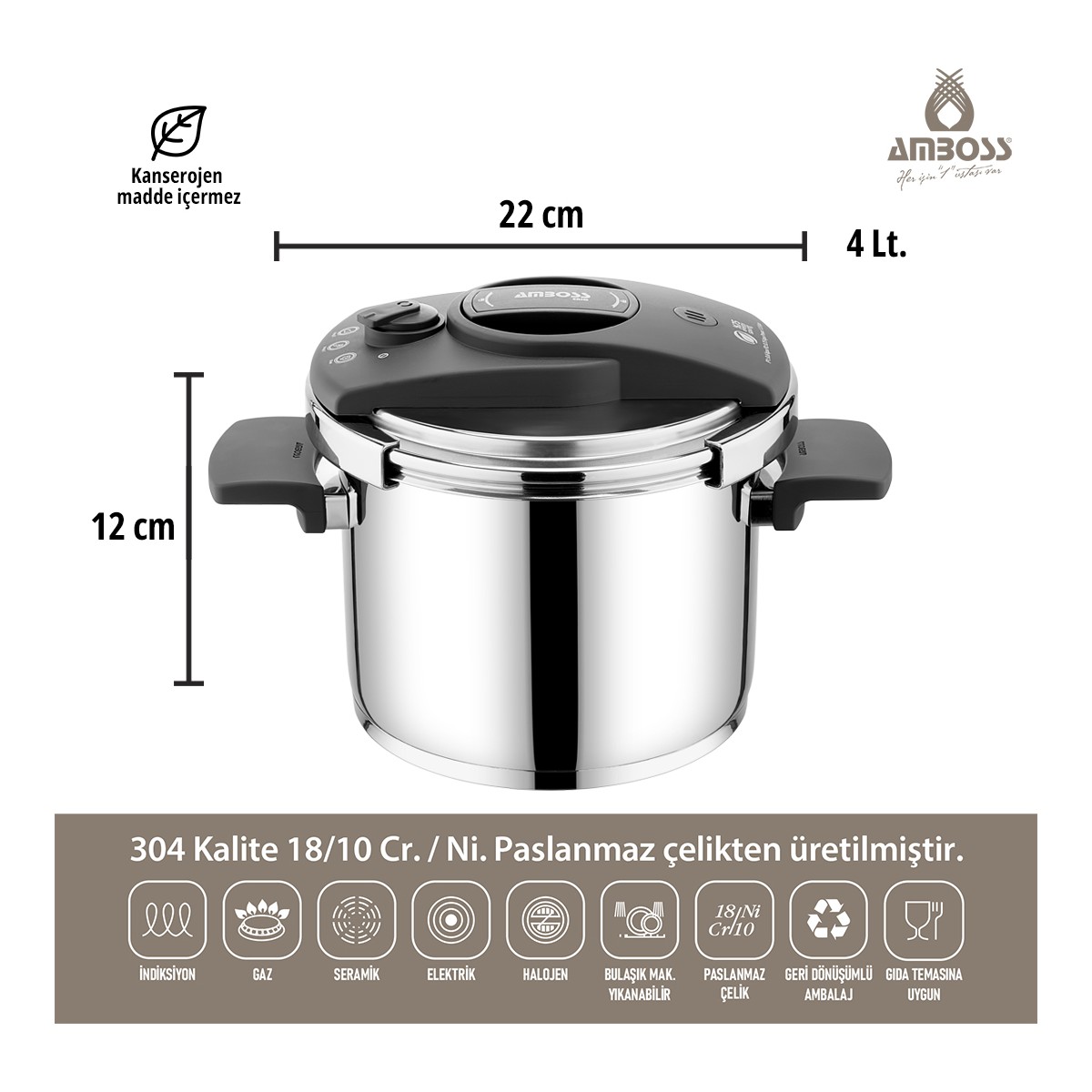 Amboss Enio Matik Paslanmaz Çelik Düdüklü Tencere 4 Lt