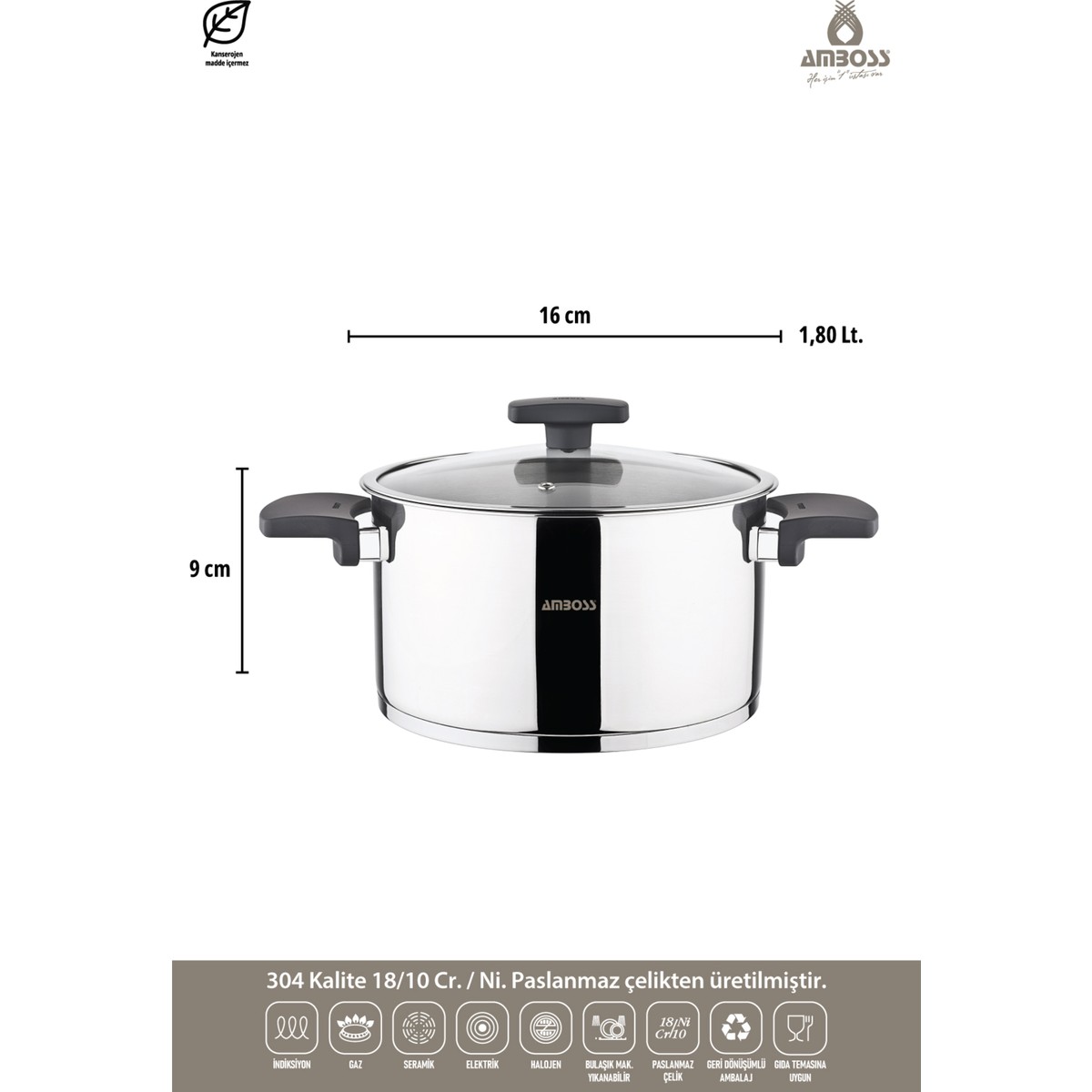 16 cm / 1.80 lt derin tencere ( Cam Kapaklı – Bakalit Saplı )