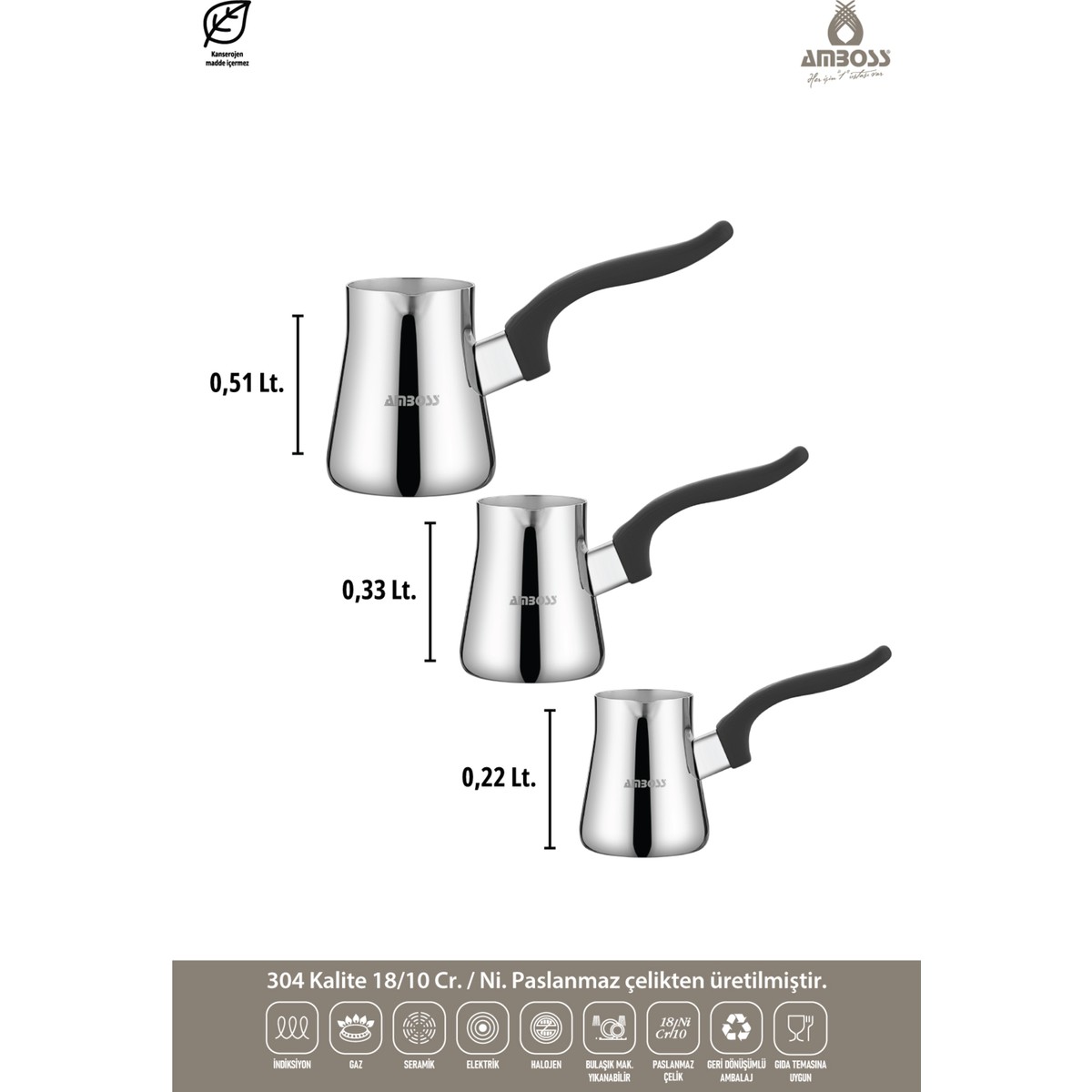 3 farklı boyutta cezve No:1 0.22 lt , No:2 0,33 lt , No:4 0,51 lt ( Bakalit Sap )