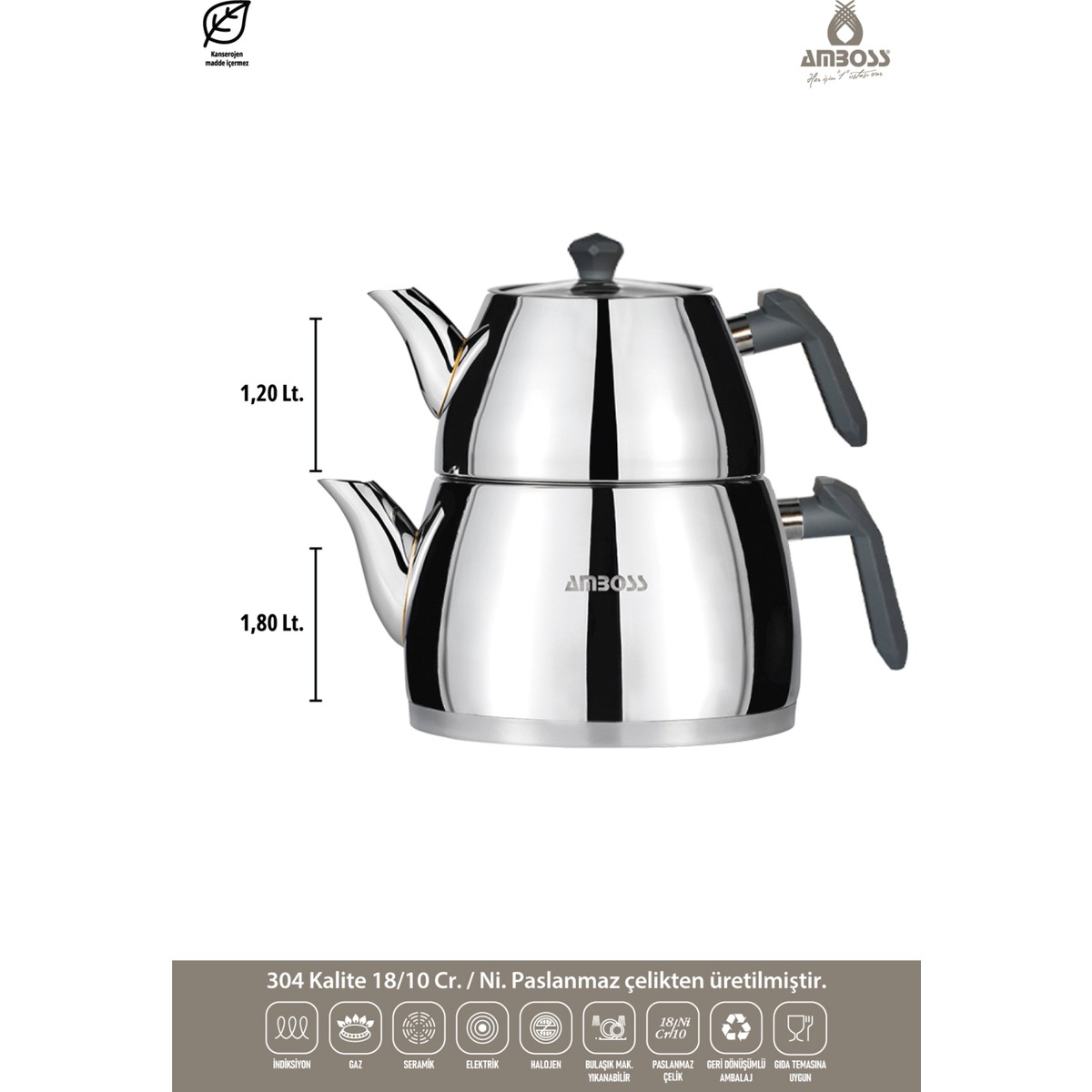 Orta boy çaydanlık seti / Üst demlik 1,20 lt, alt demlik 1,80 lt ( Bakalit Sap )