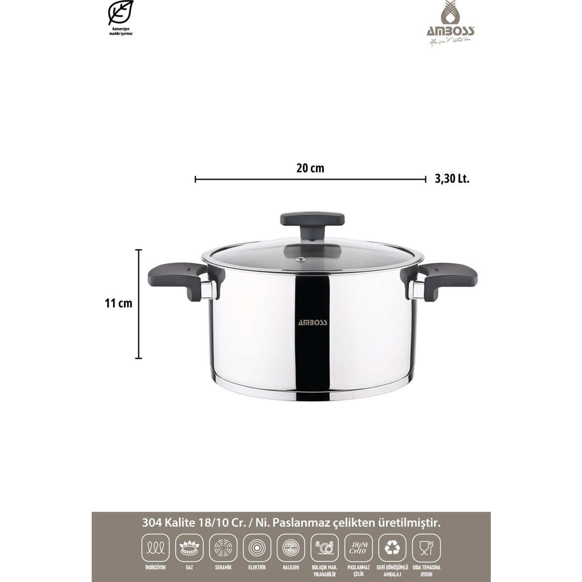 20 cm / 3,40 lt derin tencere ( Cam Kapaklı – Bakalit Saplı )