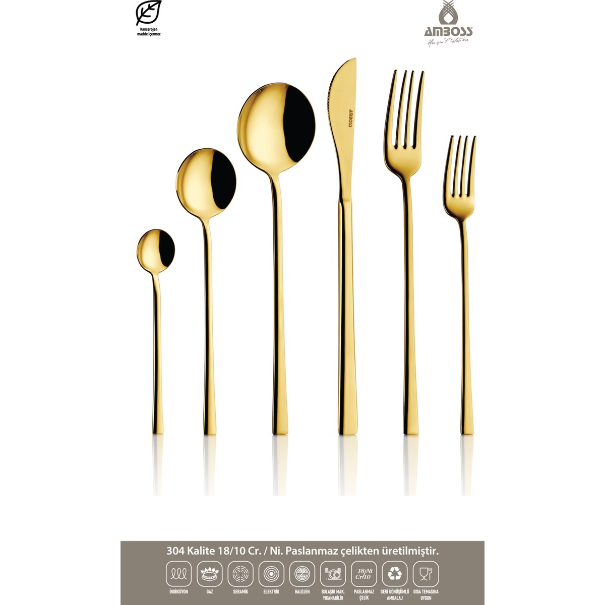 Amboss Ruby 72 Parça Paslanmaz Çelik Çatal Kaşık Bıçak Takımı – Gold Ürün Bilgisi,