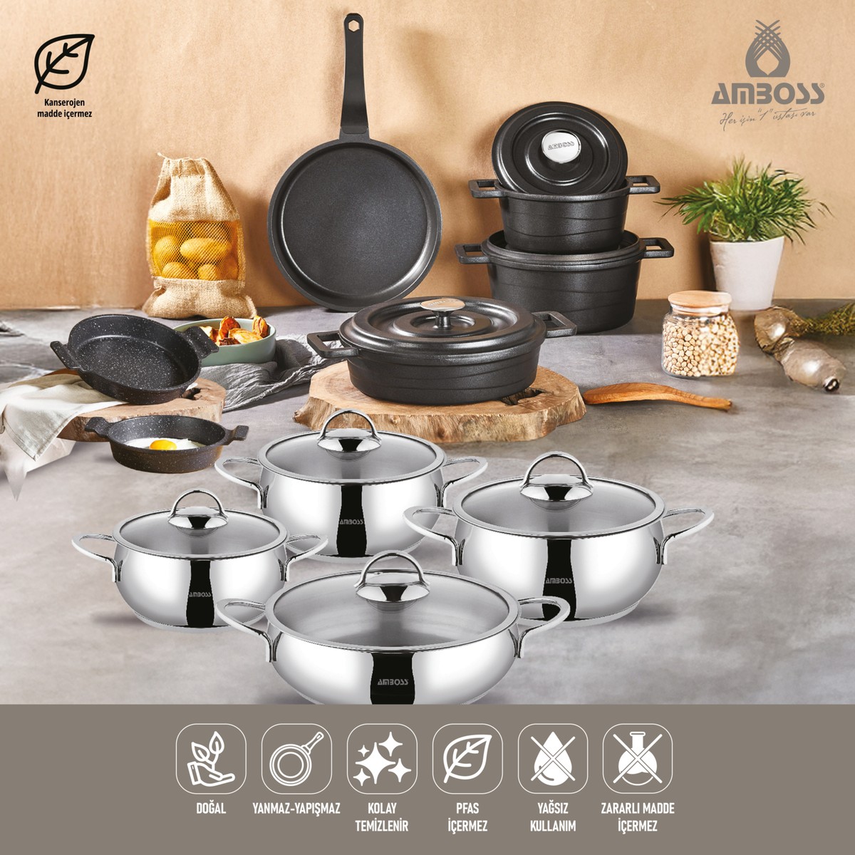 Amboss Harmoni 17 Parça Döküm Tencere & Paslanmaz Çelik Tencere Sahan Seti