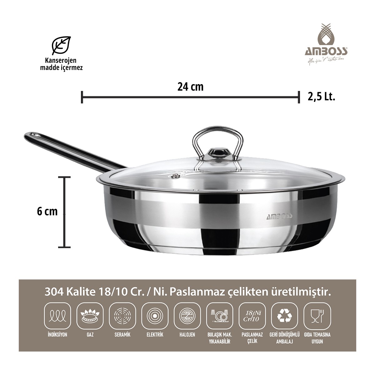 • 1 adet 24 x 6 cm (2.5 lt) tava ( kapaklı )