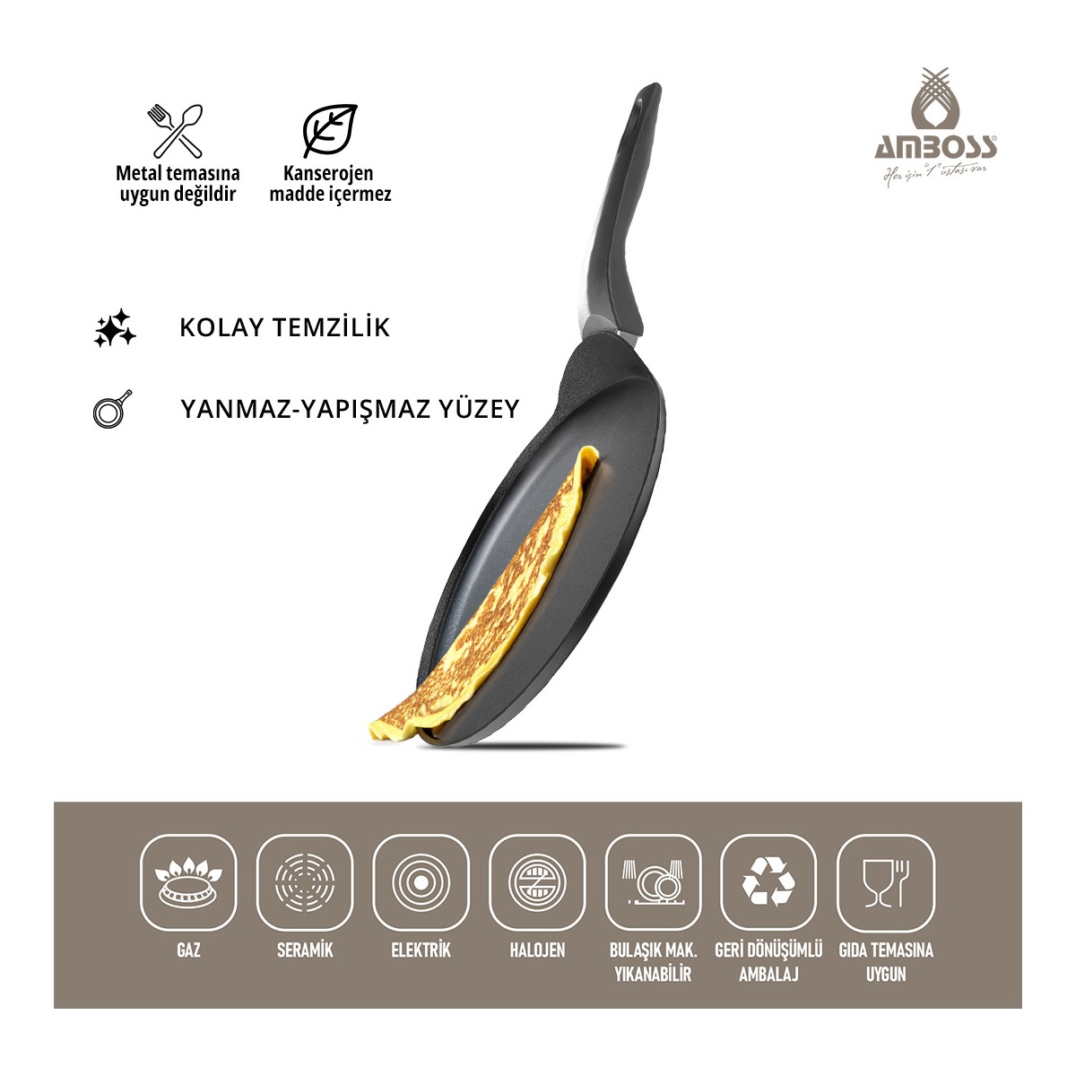 - Amboss Mocca Krep tavası ergonomik tasarımı sayesinde muadillerine göre kullanışlıdır, kusursuz pişirme performansı sunar.