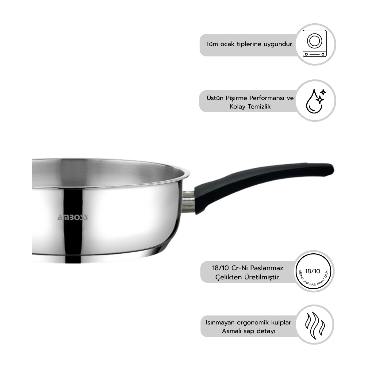 • Tüm Ocak Tiplerine Uyumlu: İndüksiyon, gaz, elektrik veya seramik… Hangi ocak tipini kullanırsanız kullanın, Amboss Siena Pro 2 mükemmel uyum sağlar. Bu çok yönlü kullanım imkanı, mutfağınızdaki en vazgeçilmez yardımcılarınızdan biri olmasını sağlar.