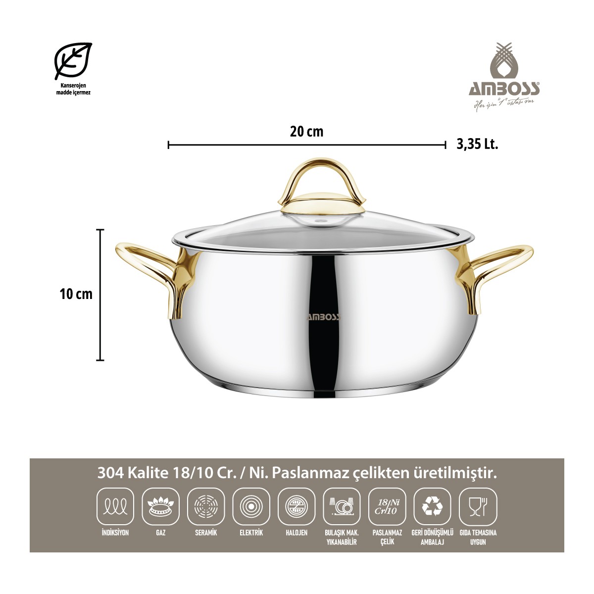 Amboss Stone Gold 8 Parça Çelik Tencere Seti — mutfakta dayanıklılık, şık tasarım ve sağlıklı pişirme deneyimini bir araya getiriyor. Hem günlük hem özel yemeklerinizde güvenle kullanabileceğiniz bu set, uzun ömürlü kullanım ve kolay temizlik avantajı sunar.