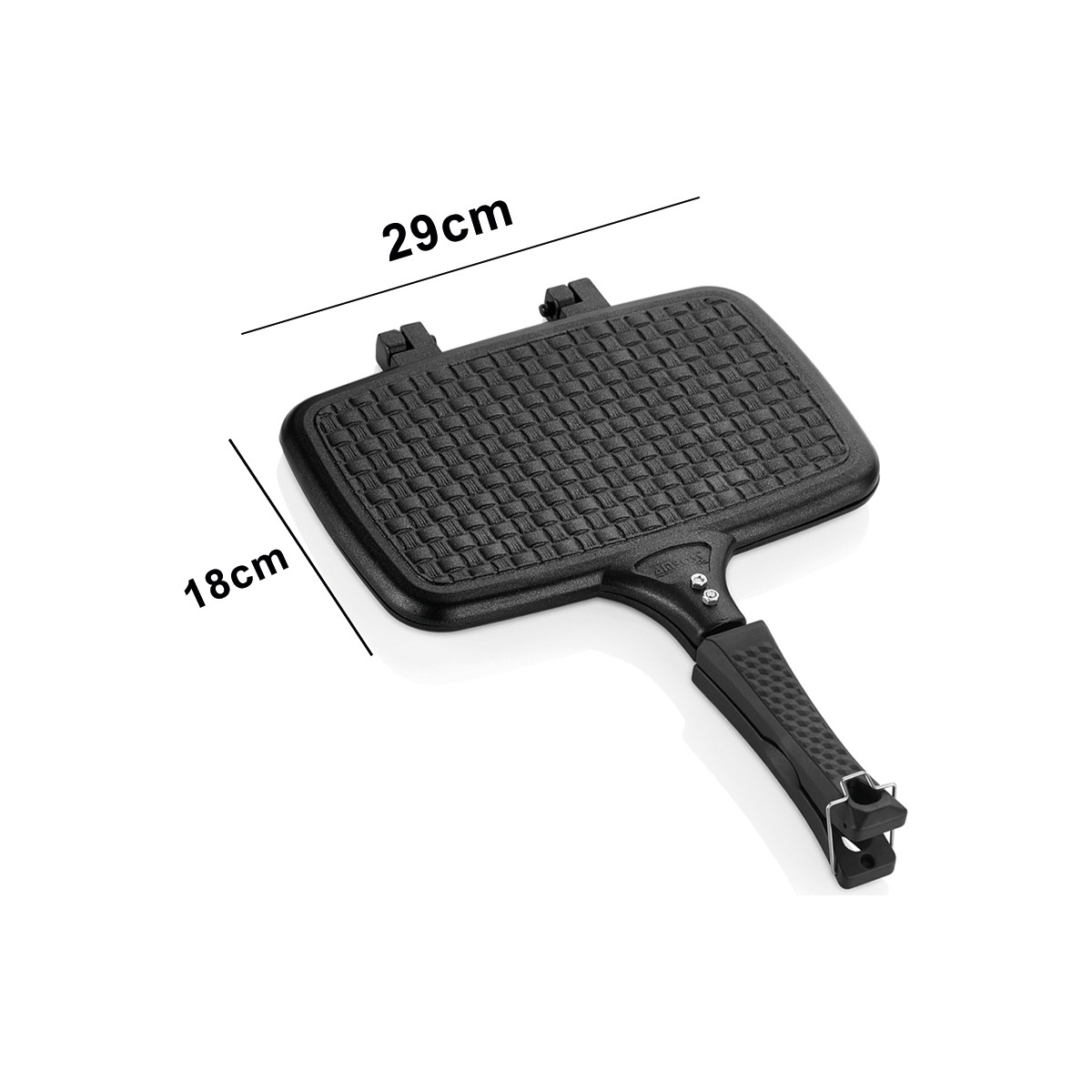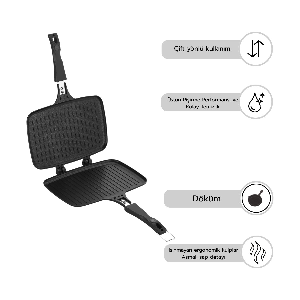 • ???? İki Farklı Tava Olarak Kullanım: En büyük avantajlarından biri çift yönlü kullanım yapısıdır. İhtiyaç duyduğunuzda makineyi kolayca ayırarak iki farklı döküm tava olarak kullanabilirsiniz. Bu, size aynı anda iki farklı yiyeceği pişirme ya da birini mühürlerken diğerini ısıtma özgürlüğü verir. Çift tava pratikliğiyle mutfakta işiniz iki kat kolaylaşır.