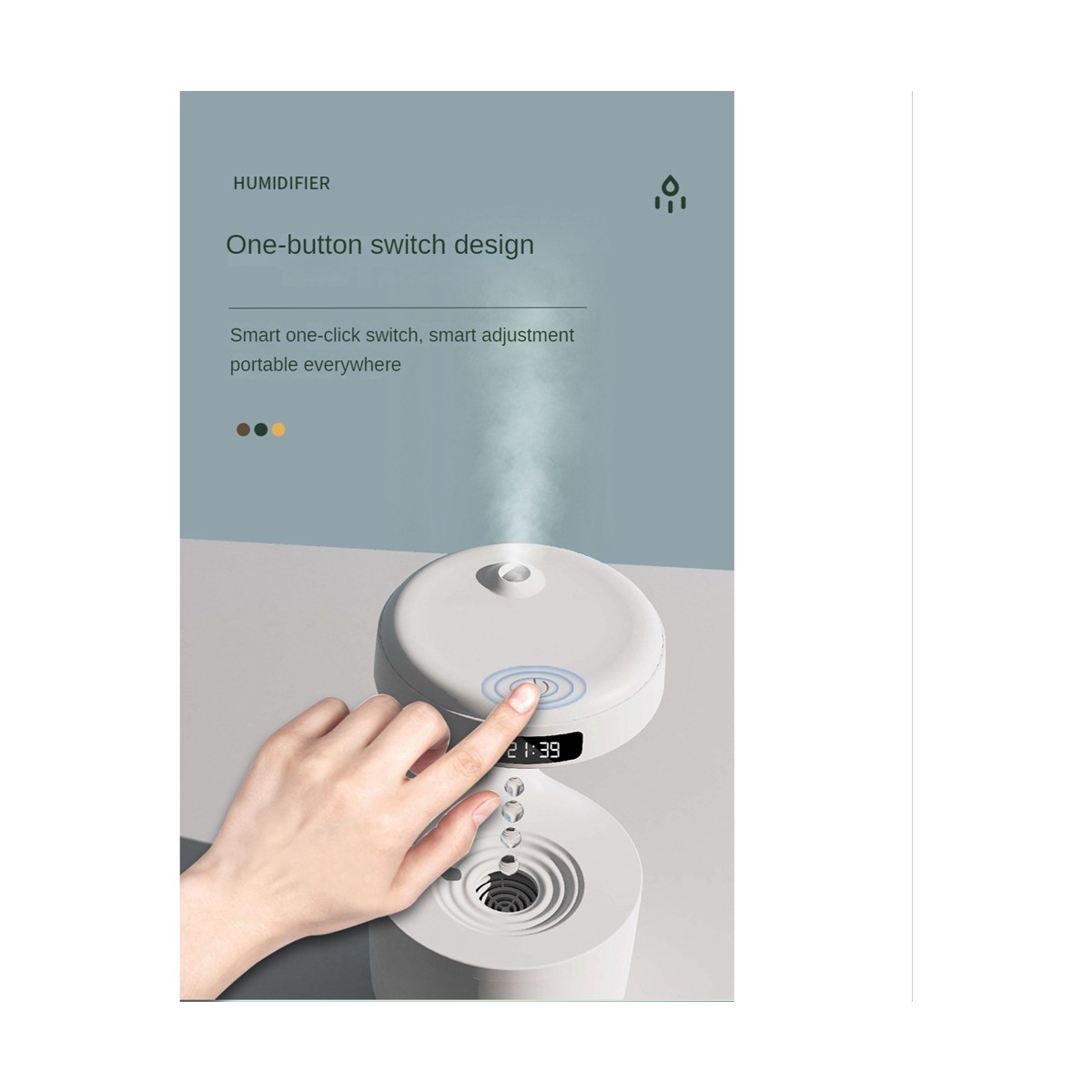 Ekranın özellikleri. İnce sprey Küçük boy, büyük kapasite. Sessiz nemlendirme Yerçekimi önleyici siyah teknoloji Sis hacminin akıllı düzenlenmesi Akıllı ekran boyutu: 120 x 231mm Malzeme: ABS renk: Beyaz Paket İçeriği: 1 x Nemlendirici 1 x USB kablosu Yalnızca yukarıdaki paket içeriği, diğer ürünler dahil değildir. Not: Işık yansıması ve farklı ekranlar, resimdeki öğenin renginin gerçekte biraz farklı olmasına neden olabilir. İzin verilen ölçüm hatası +/- 1-3 cm’dir.