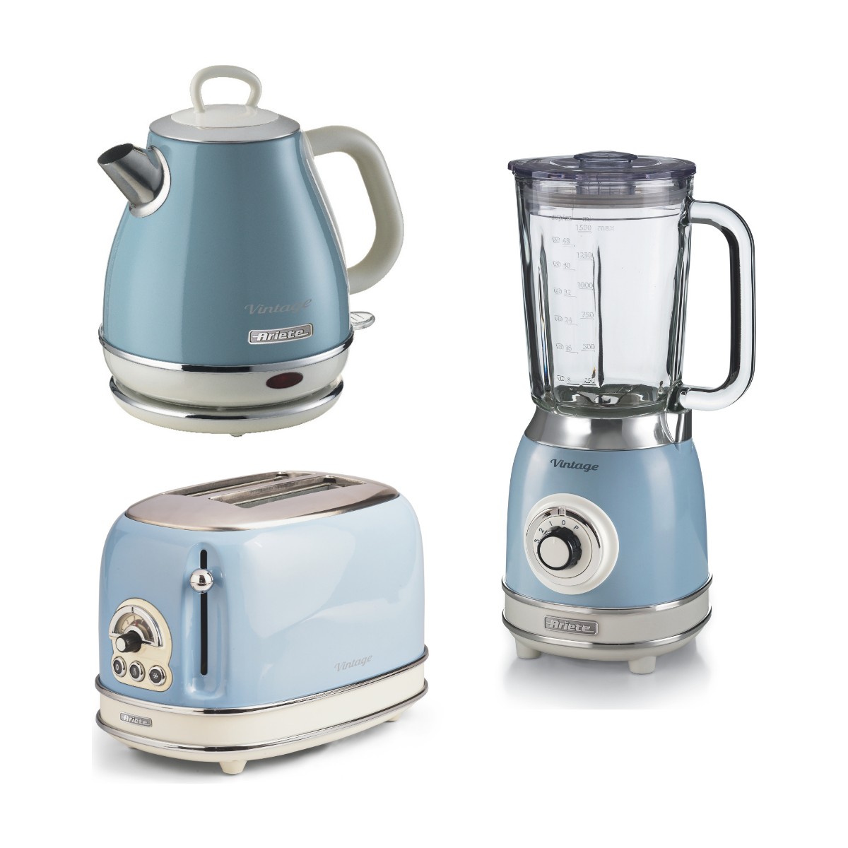 Ariete Vintage Kahvaltı Seti Su Isıtıcı Kettle + Smoothie Cam Blender + Ekmek Kızartma Makinesi Seti Mavi