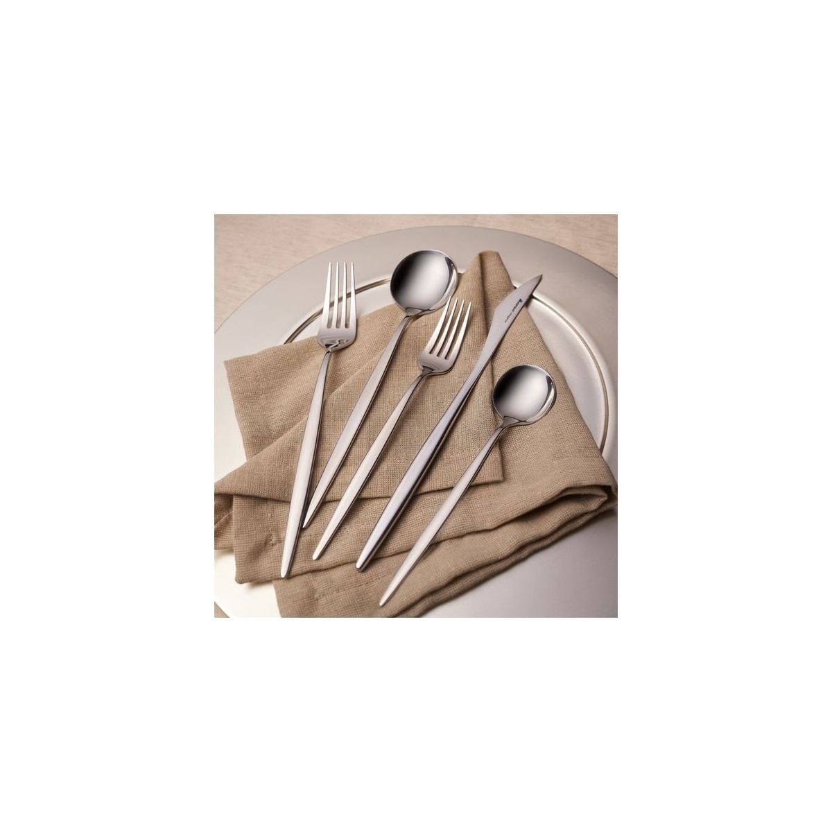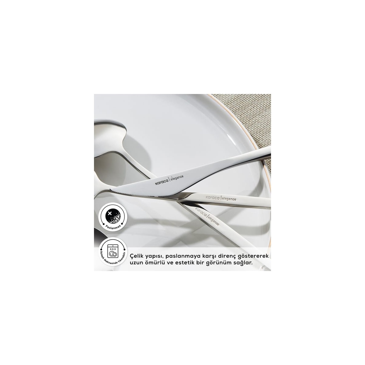 Karaca New Porto Platin 12 Kişilik 60 Parça Çatal Kaşık Bıçak Takımı Karaca New Porto 60 Parça 12 kişilik Elegance Çatal, Kaşık, Bıçak seti ile sofranızda sıra dışı bir şıklığa yer açın! Modern ve incelikli tasarımı ile eşsiz bir güzelliğe sahip Porto çatal, kaşık, bıçak seti uzun süre parlaklığını koruyan paslanmaz çelikten oluşur. Bu sayede sağlıklı ve uzun ömürlü bir kullanım sunar. Özel kutusunda saklayabileceğiniz çatal, kaşık, bıçak setinin 60 parçalık geniş içeriğinde 12’şer adet yemek çatalı, yemek kaşığı, yemek bıçağı, tatlı çatalı ve tatlı kaşığı bulunmaktadır. Set İçeriği 12 Adet Yemek Kaşığı (20.8 cm) 12 Adet Yemek Çatalı (20.8 cm) 12 Adet Yemek Bıçağı (23 cm) 12 Adet Tatlı Çatalı (18 cm) 12 Adet Tatlı Kaşığı (18 cm) Malzeme: Paslanmaz Çelik