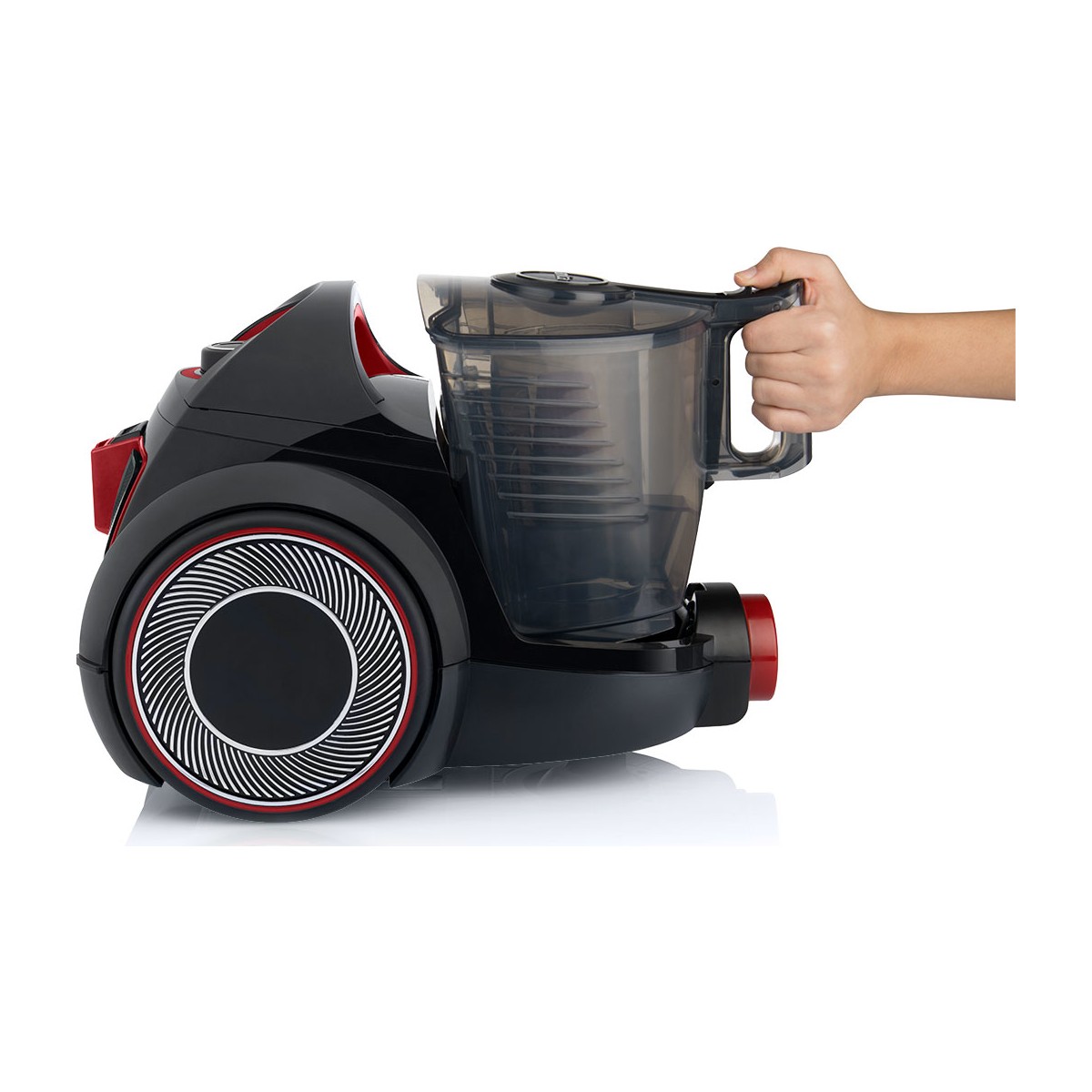 AAA sınıfı enerji tasarrufu vadeden toz torbasız elektrik süpürgesi, emiş gücü ayar düğmesi sayesinde evinizin kontrolü size bırakıyor.