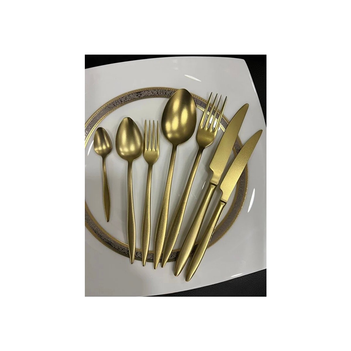Gold Dine 30 Parça Çatal Kaşık Bıçak Takımı | Mat Gold | 6 Kişilik | 18/10 Paslanmaz Çelik