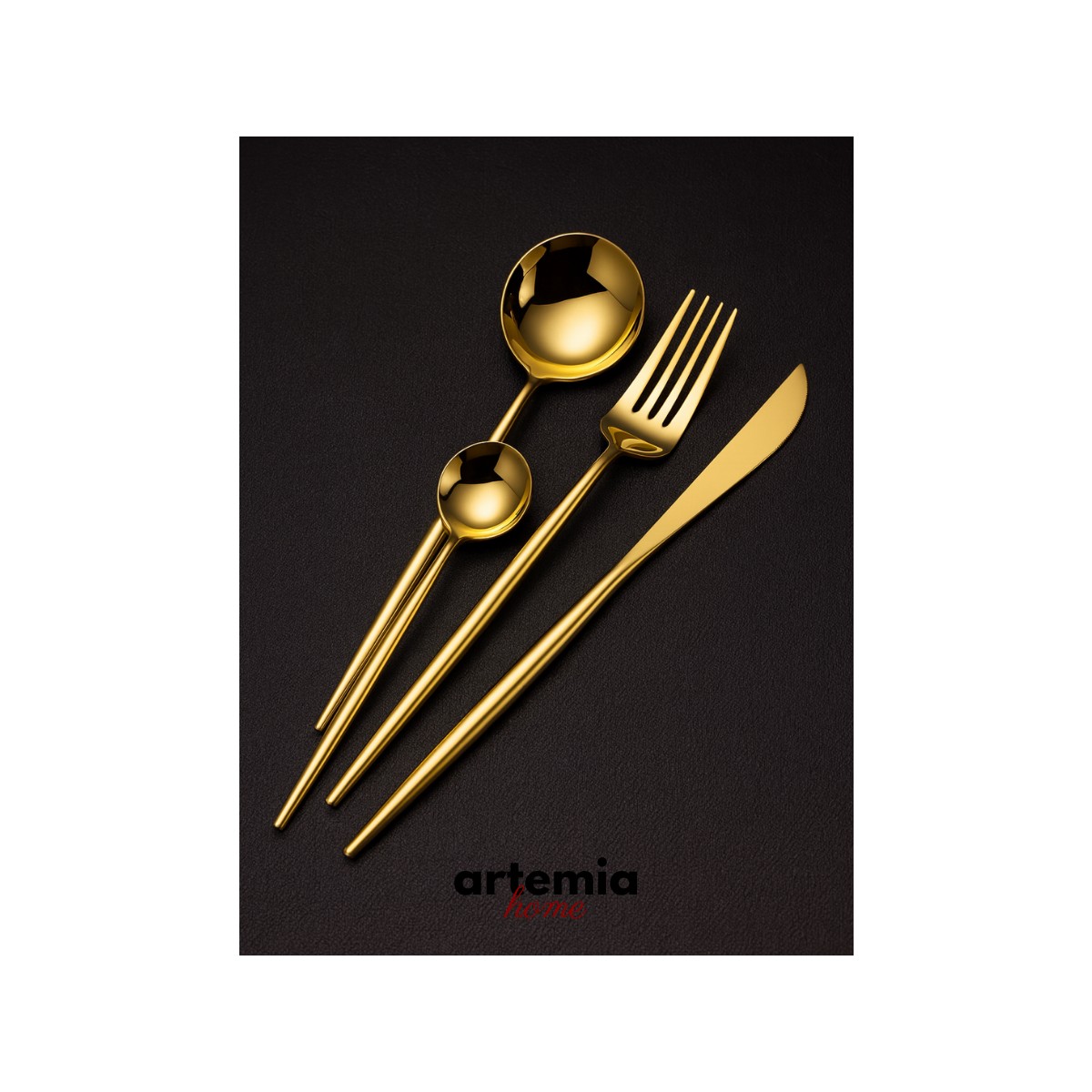 Artemia Home Royal 48 Parça Yemek Takımı | 8 Kişilik | 18/10 Paslanmaz Çelik Gold Kaplama Premium Set