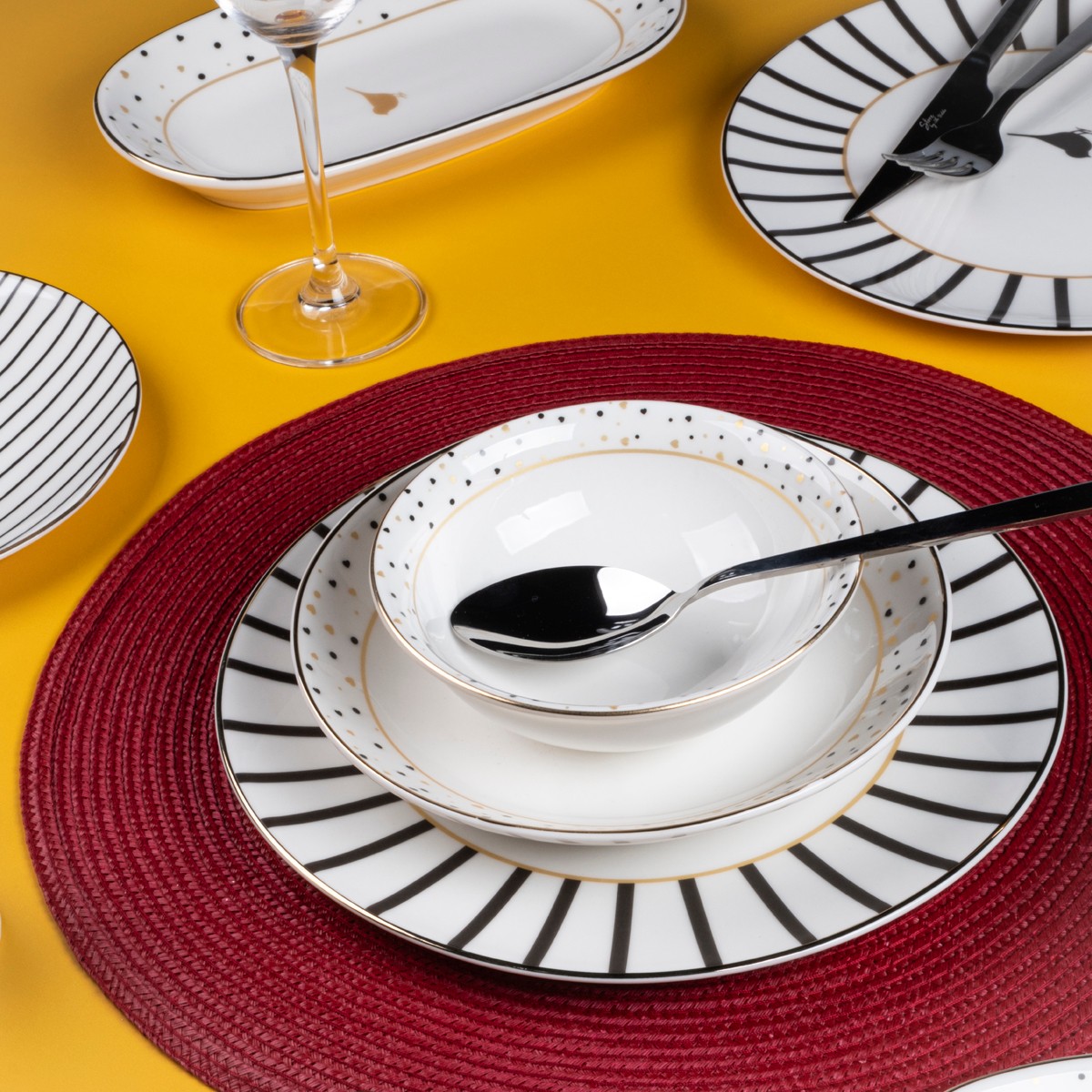Modern tarzı ve fonksiyonelliği bir arada arayanlar için uygundur. Gündelik yemeklerden özel davetlere kadar her sofrada şık ve kullanışlı bir çözüm sunar.