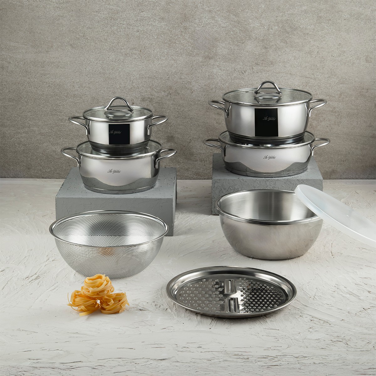 Çelik tencerelerin dayanıklılık ve kullanışlılığı ile Aryıldız bir arada… Hem sağlıklı, hem de lezzetli yemekler hazırlamak için Aryıldız Solo 8 Parça Tencere Seti tercih edilip kullanılabilir.