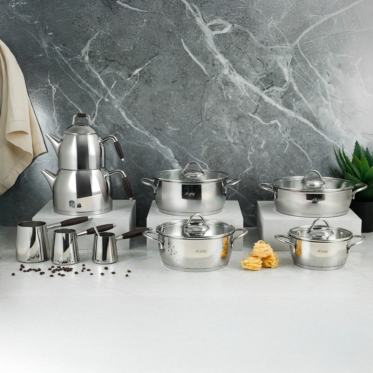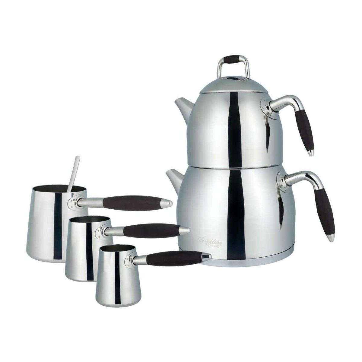 Ar Yıldız Çaydanlık ve cezve takımları paslanmaz çelik gövdeden üretilen özel tasarımlara sahiptir.