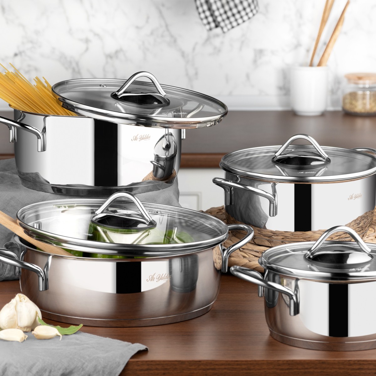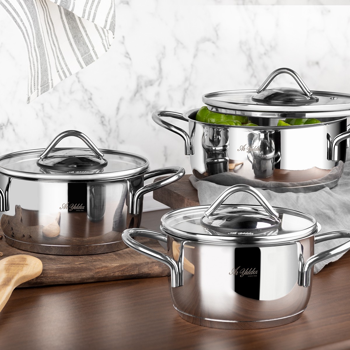Çelik tencerelerin dayanıklılık ve kullanışlılığı ile Aryıldız kalitesi bir arada… Hem sağlıklı, hem de lezzetli yemekler hazırlamak için Aryıldız Solo 8 Parça Tencere Seti tercih edilip kullanılabilir.