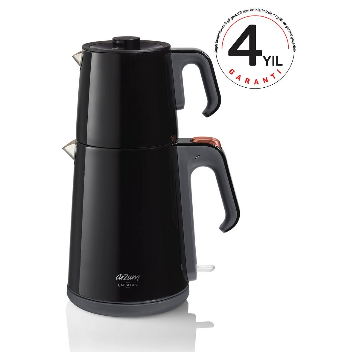 Arzum Çay Sefası, çay makinenizin içinde su olmadığında kaynatma işlemini engelleyen emniyet sistemine sahiptir. Susuz çalışmayı önleyen emniyet sistemi ile çok daha güvenli bir kullanım sağlar.