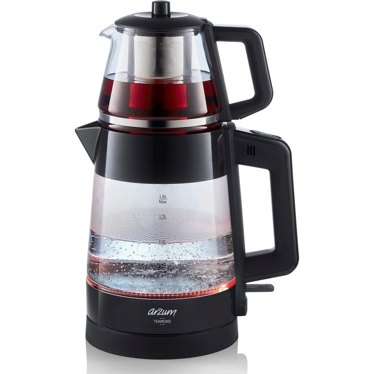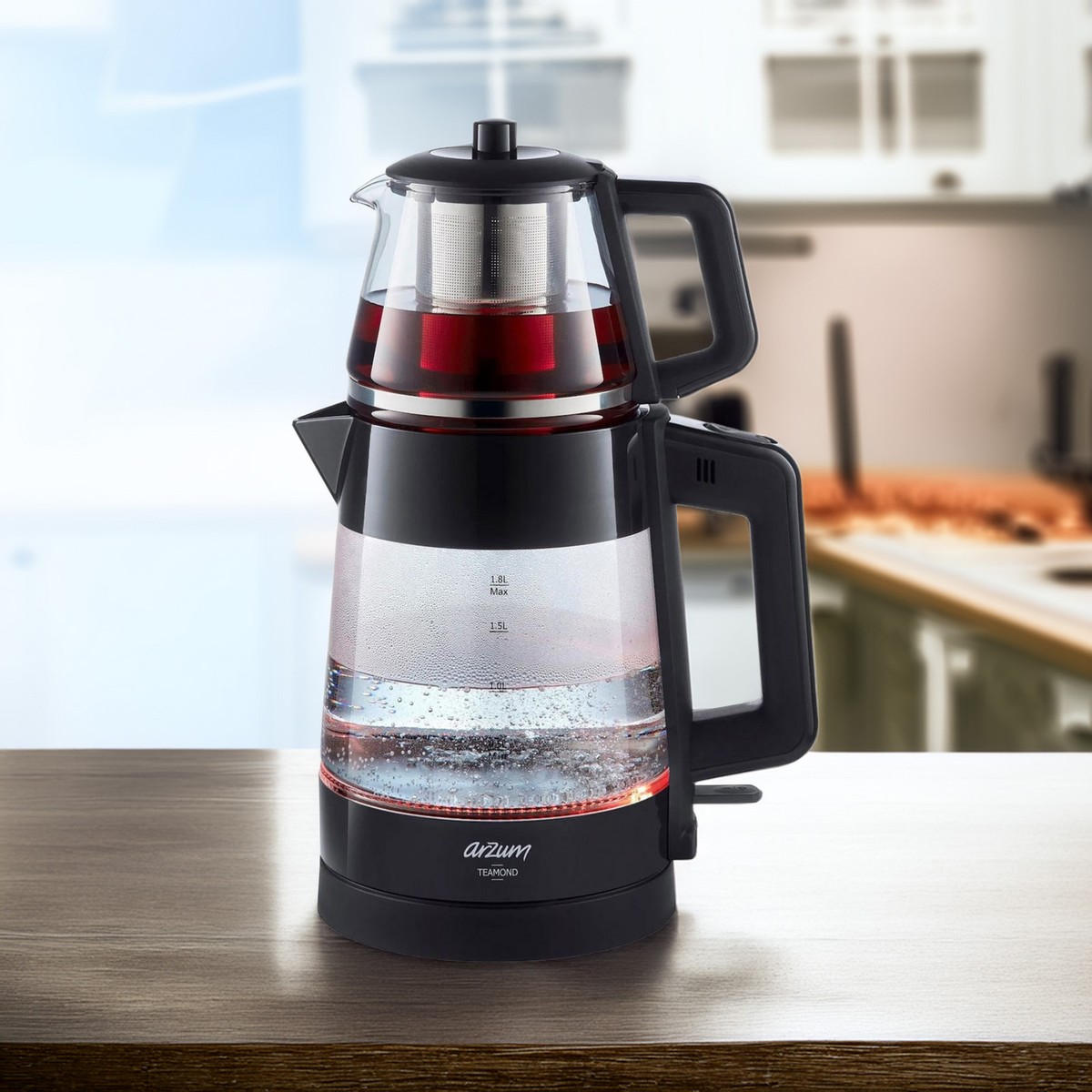 Arzum Teamond 1,8 litre kapasiteli su haznesi ve 1,1 litre geniş kapasiteli cam demliği ile size tek seferde daha fazla çay hazırlama imkanı sunar.