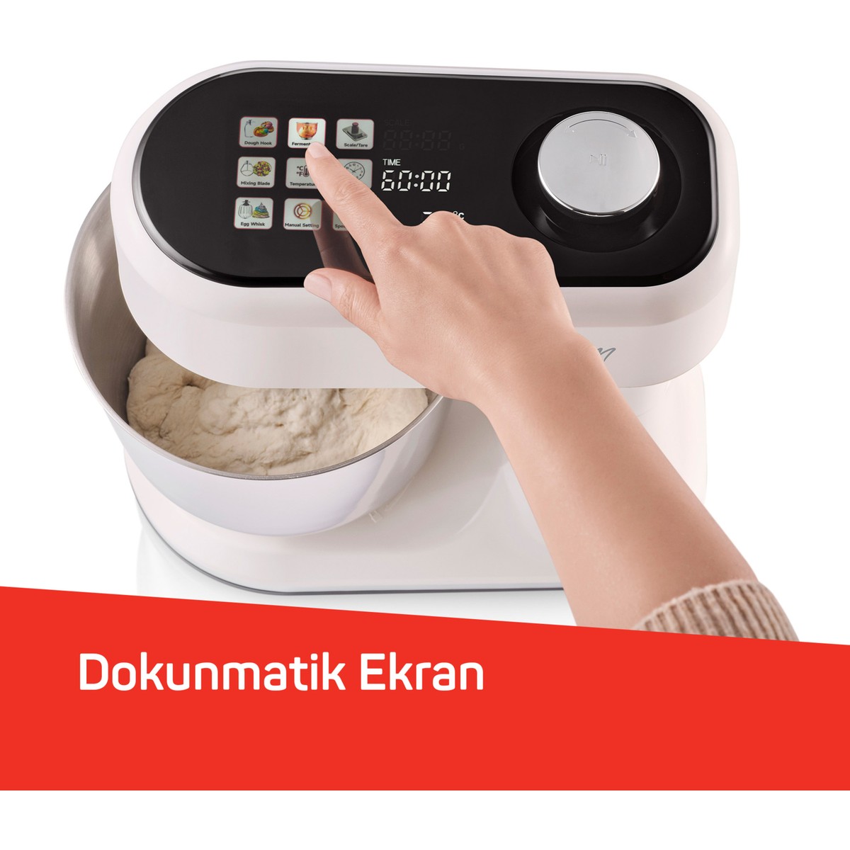 1500 W güçlü motoru ile istenilen karışımı kısa sürede hazırlar ve hamurları zahmetsizce yoğurur.