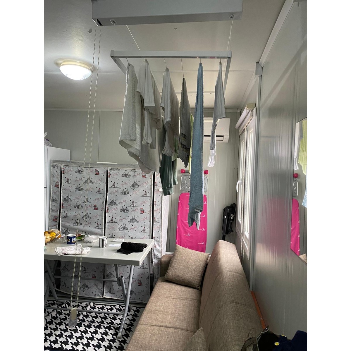 Çamaşırlık mantığı çok güzel ama malzeme kalitesi daha iyi olabilirdi bence ,bu fiyat İçin kalite daha yüksek olmalı sadece. Onun dışında sistem gayet güzel, yukarıya çekip yerden tasarruf etmek harika.